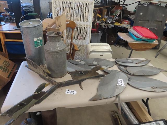 Modern Dairy Cream Can, Milk Strainer, & Wooden Duck & Goose Decoys