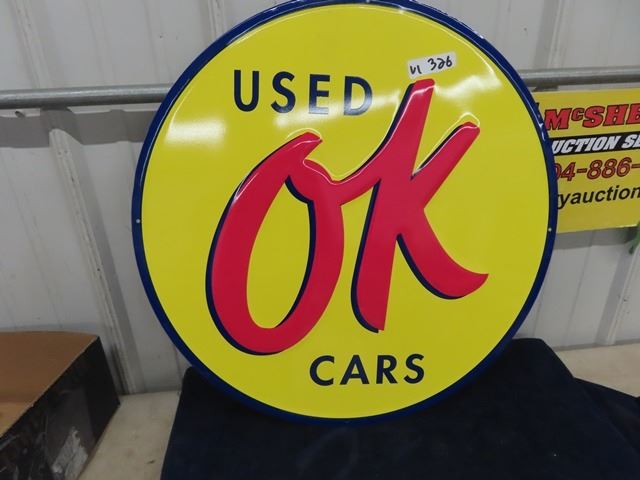Modern Metal Embossed Used OK Cars Sign 24"RDish