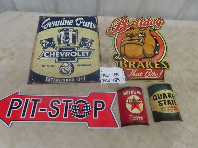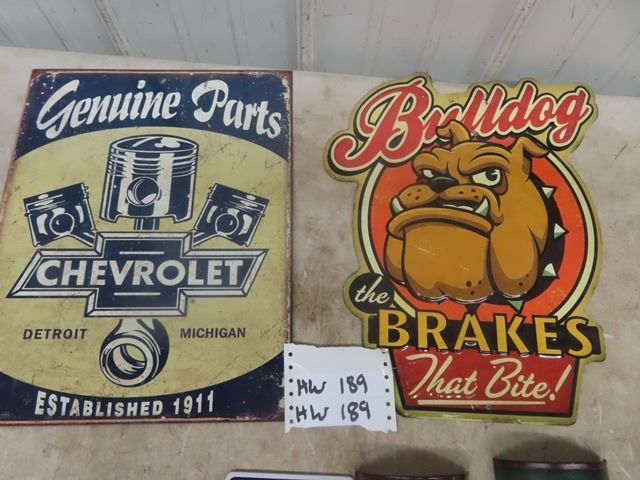 Modern Metal Garage Signs- Bulldog Brakes 16"x 13" Chevy Parts 12" x 16" plus others