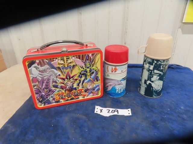 Modern Metal Lunch Kit Yu-Gi-OH & 2 Vintage Thermos; 1) 1966 Flipper, 1) 1960 Marine