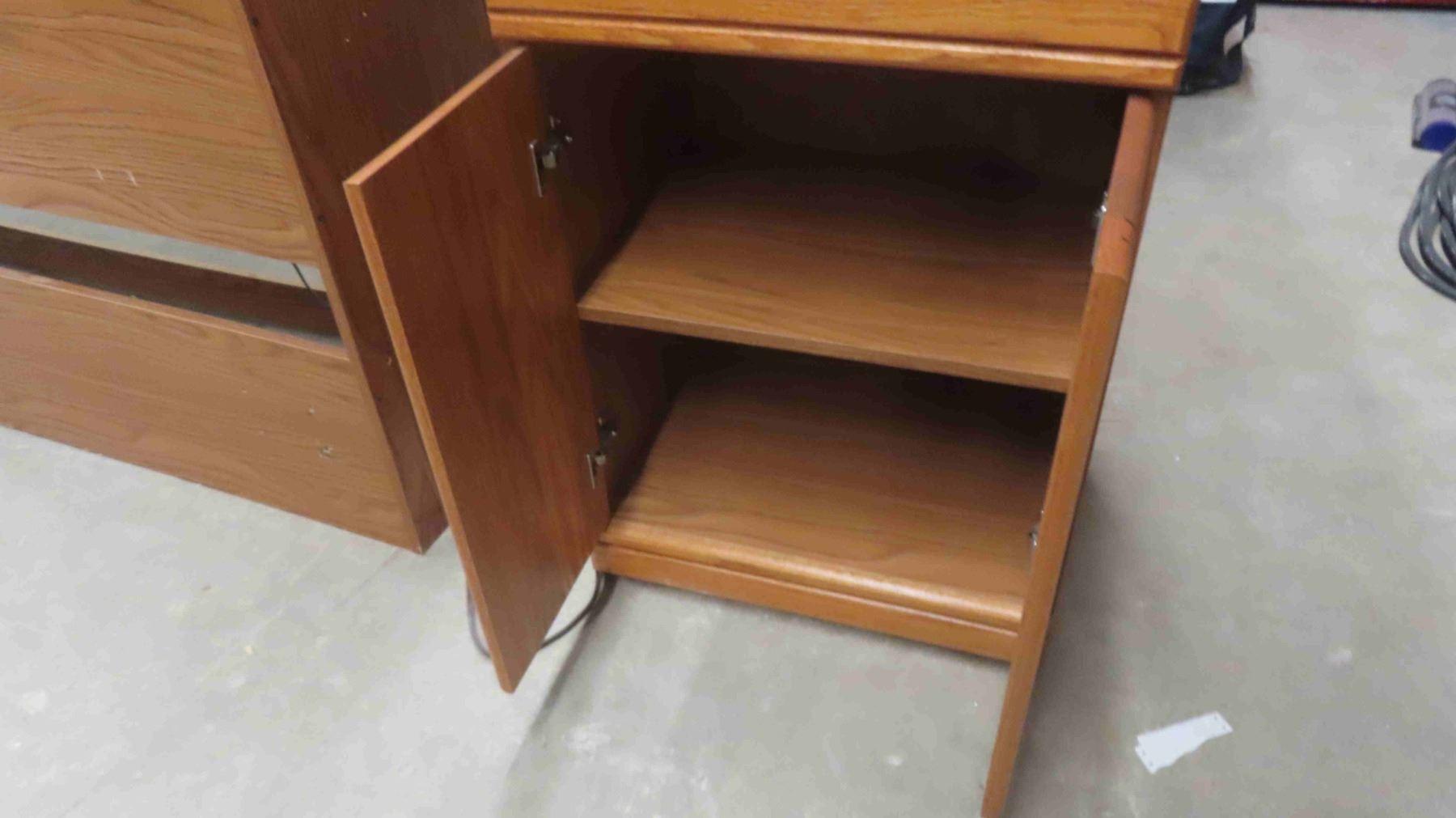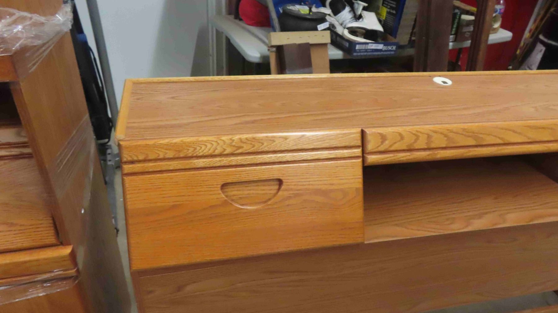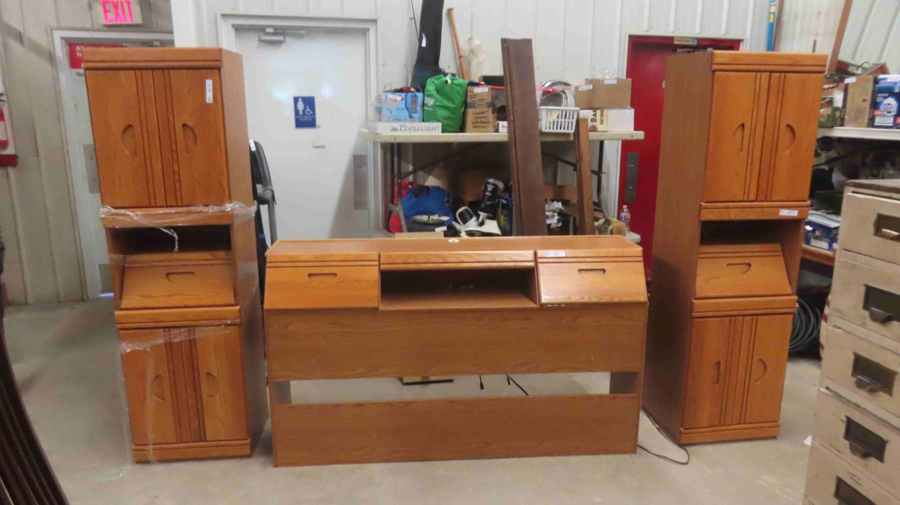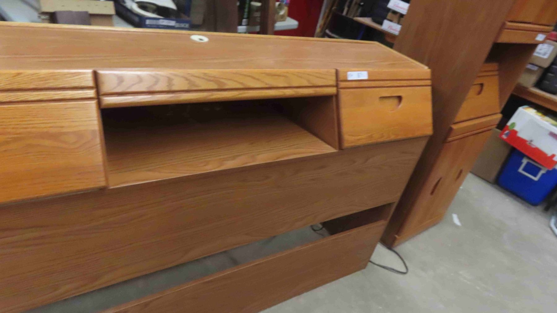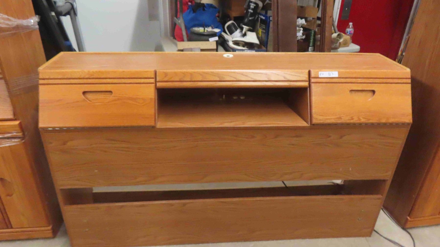 Modern Oak Headboard 60'' Wide , 2 Tower Night Stands with Lights 72'' x 21'' x 16''