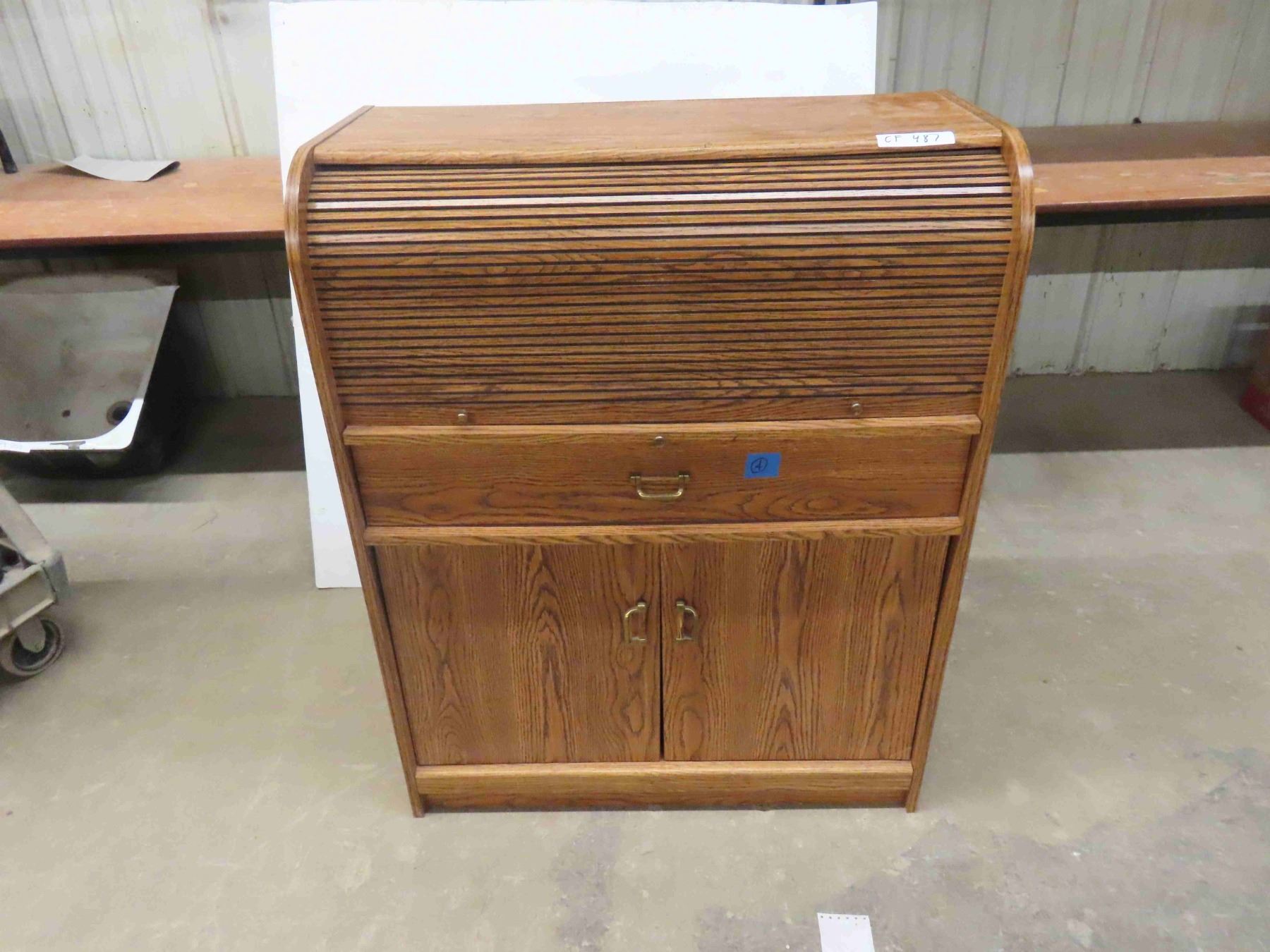 Modern Oak Style Roll Top Desk 42'' x 33'' x 16''