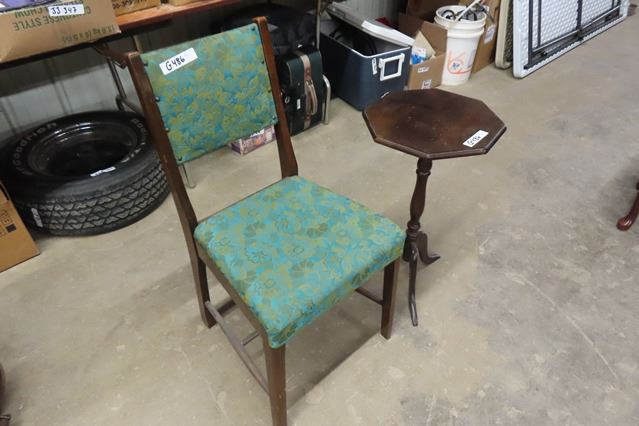 Modern Pedestal Side Table 14" x 14" X 25" with Funky Upholstered Wooden Chair