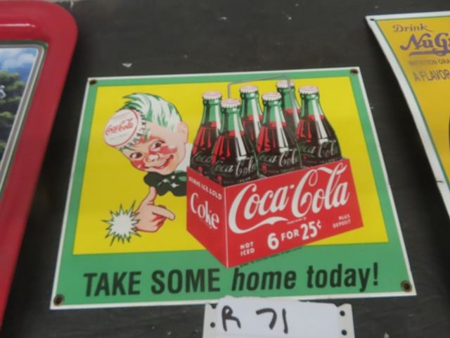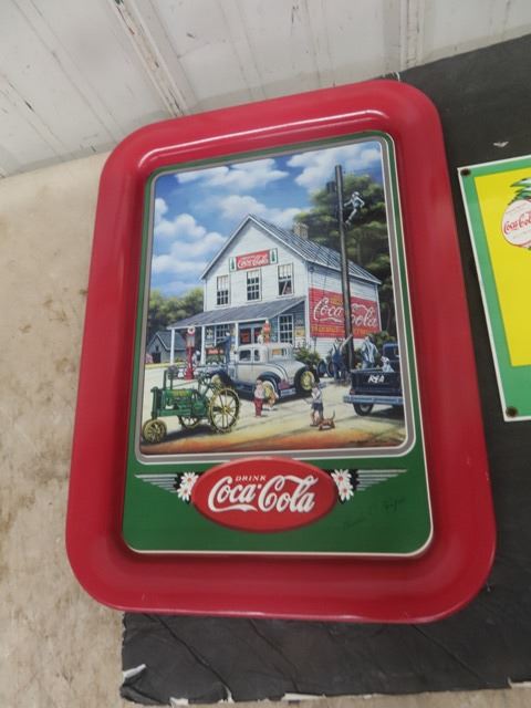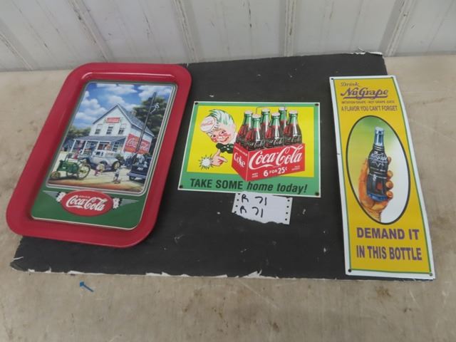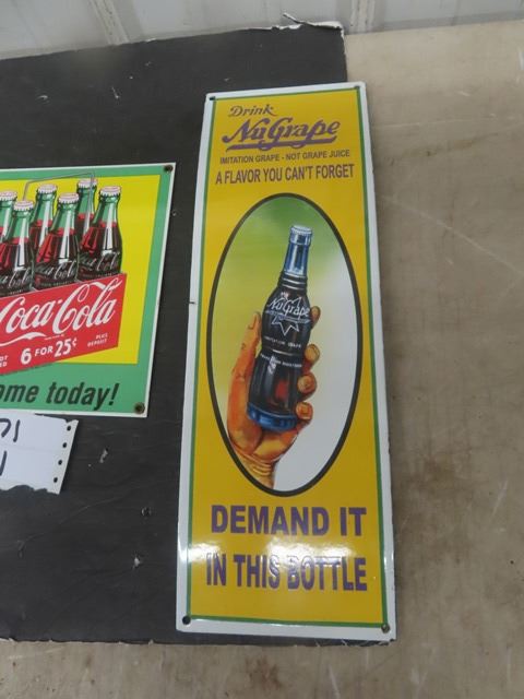 Modern Porcelain Coca-Cola Sign 9" x 11" , Modern Porcelain Nu Grape Sign 5.5" x 16.5" & Coke Tray