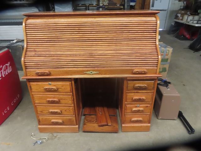 Modern Roll Top Oak Desk 54"x54"x28"