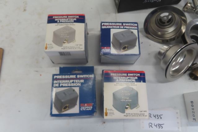 Moen Faucet, Hose Clamps, Drain Caps, 4 Pressure Switches