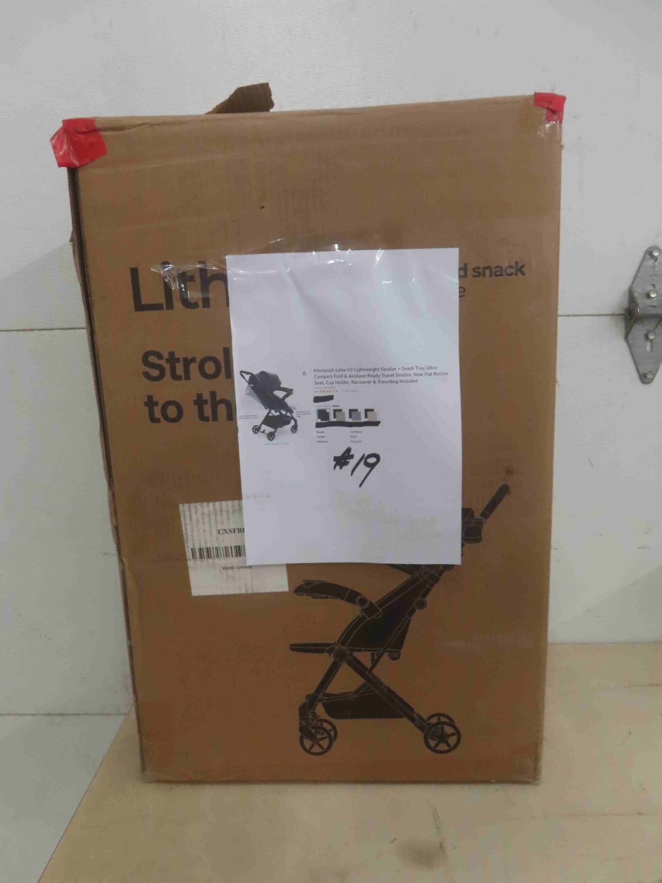 Mompush Lithe V2 Lightweight Stroller + Snack Tray, Ultra-Compact Fold & Airplane Ready Travel Stroller, Near Flat Recline Seat, Cup Holder, Raincover & Travelbag Included - New or Store Return