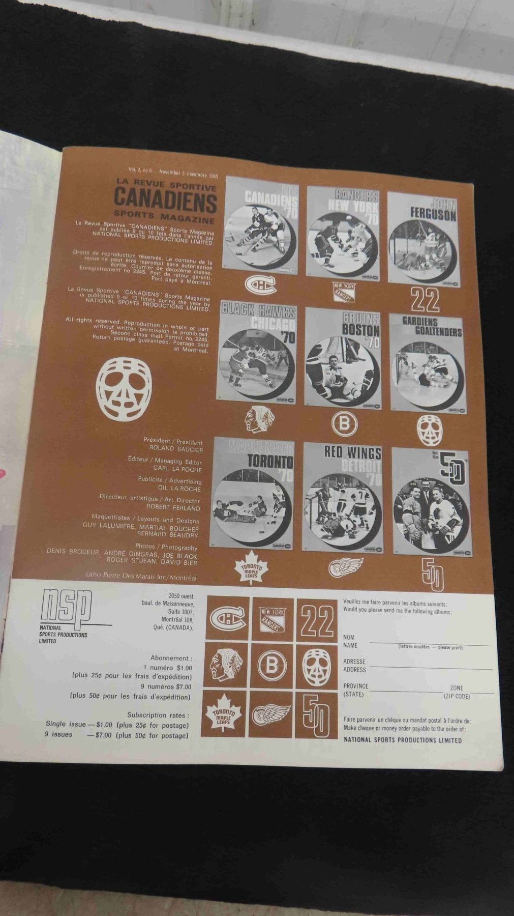 Montreal Canadiens 1969 Goal Tenders Magazine