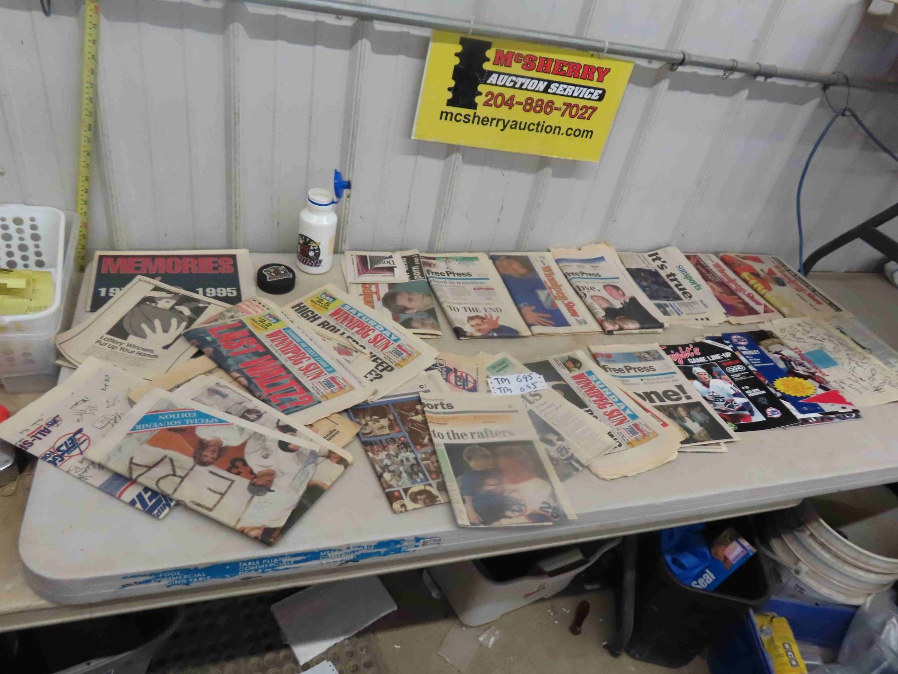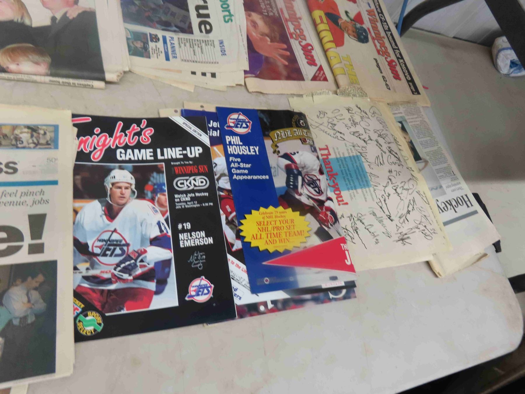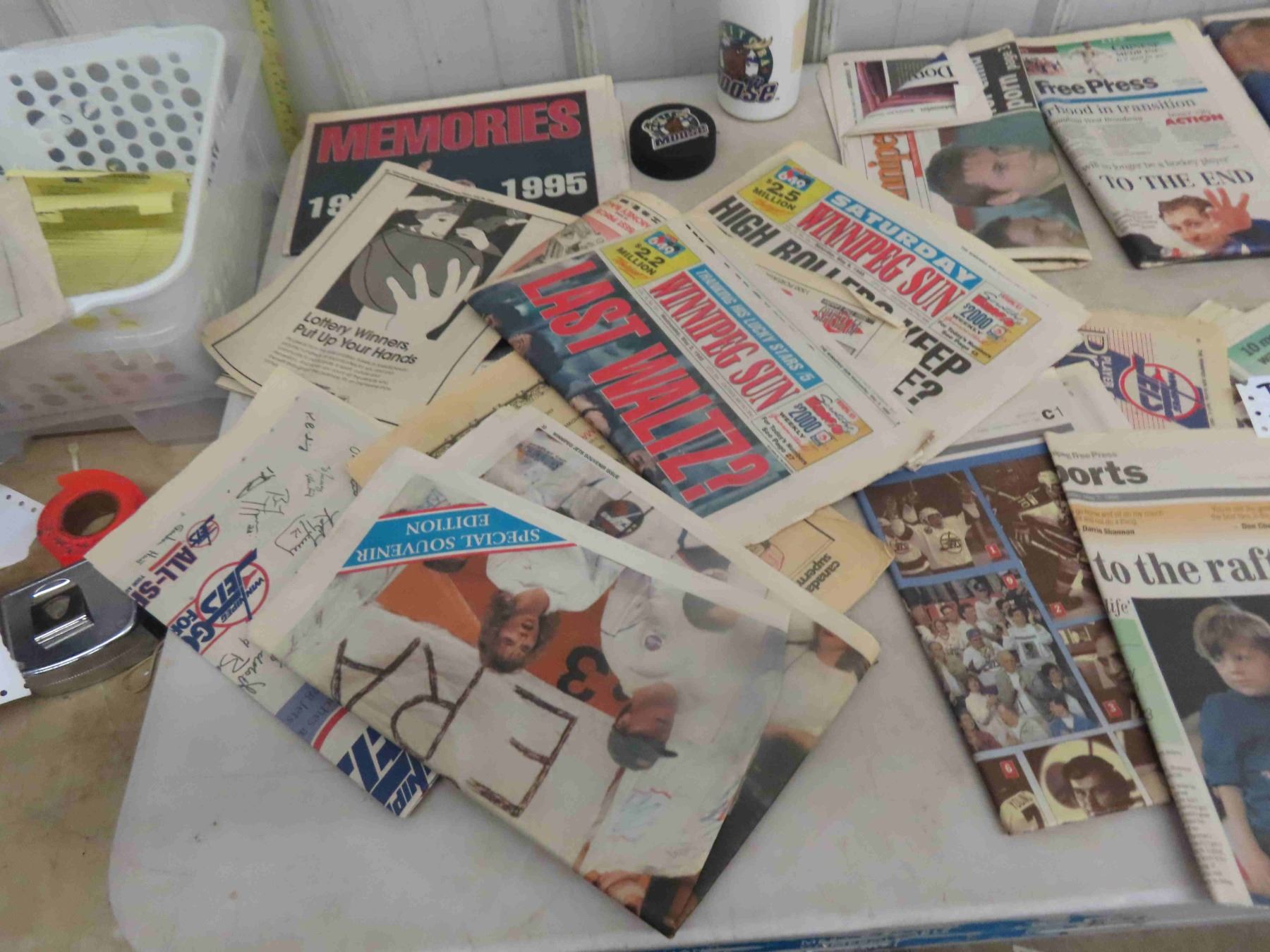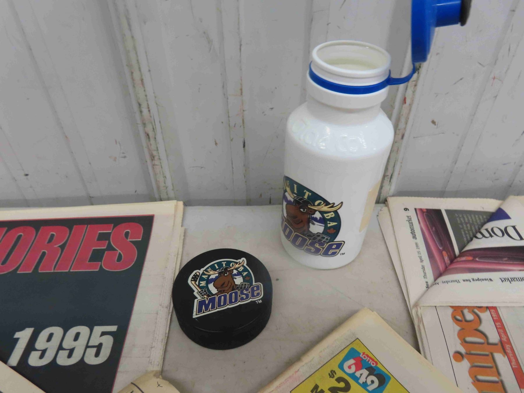 Moose Hockey Puck, Newspaper Clippings; WPG Jets + Wayne Gretzky
