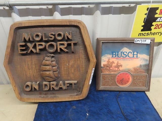 Moslon Export Sign 18" X 21" & Bush Light Up Clock 13" x 13"