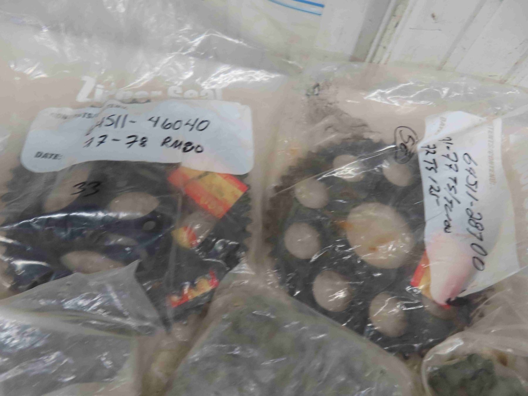 Motorcycle Parts: Brake/Clutch, Handles, Sprockets, Drive Roller Chain, Lots with Parts #s.