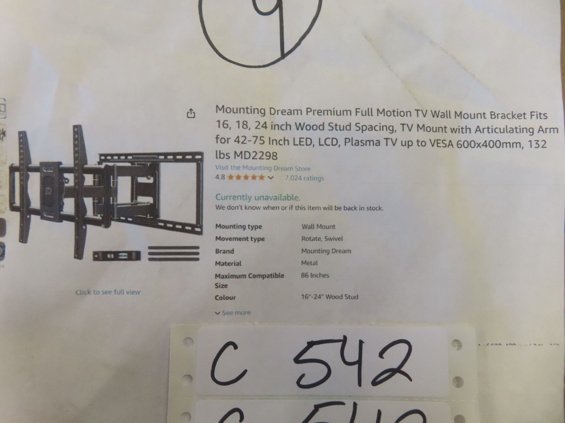 Mounting Dream Premium Full Motion TV Mount Bracket fits 16, 18, 24 inch Stud Spacing with Articulating Arm for 42 - 75'' 132lbs MD2298. New or Store Return