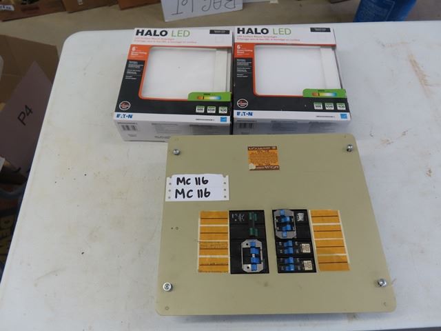Mova Line 100 Amp Service Panel with Breakers, 2 Halo 6" LED Surface Mount Downlights