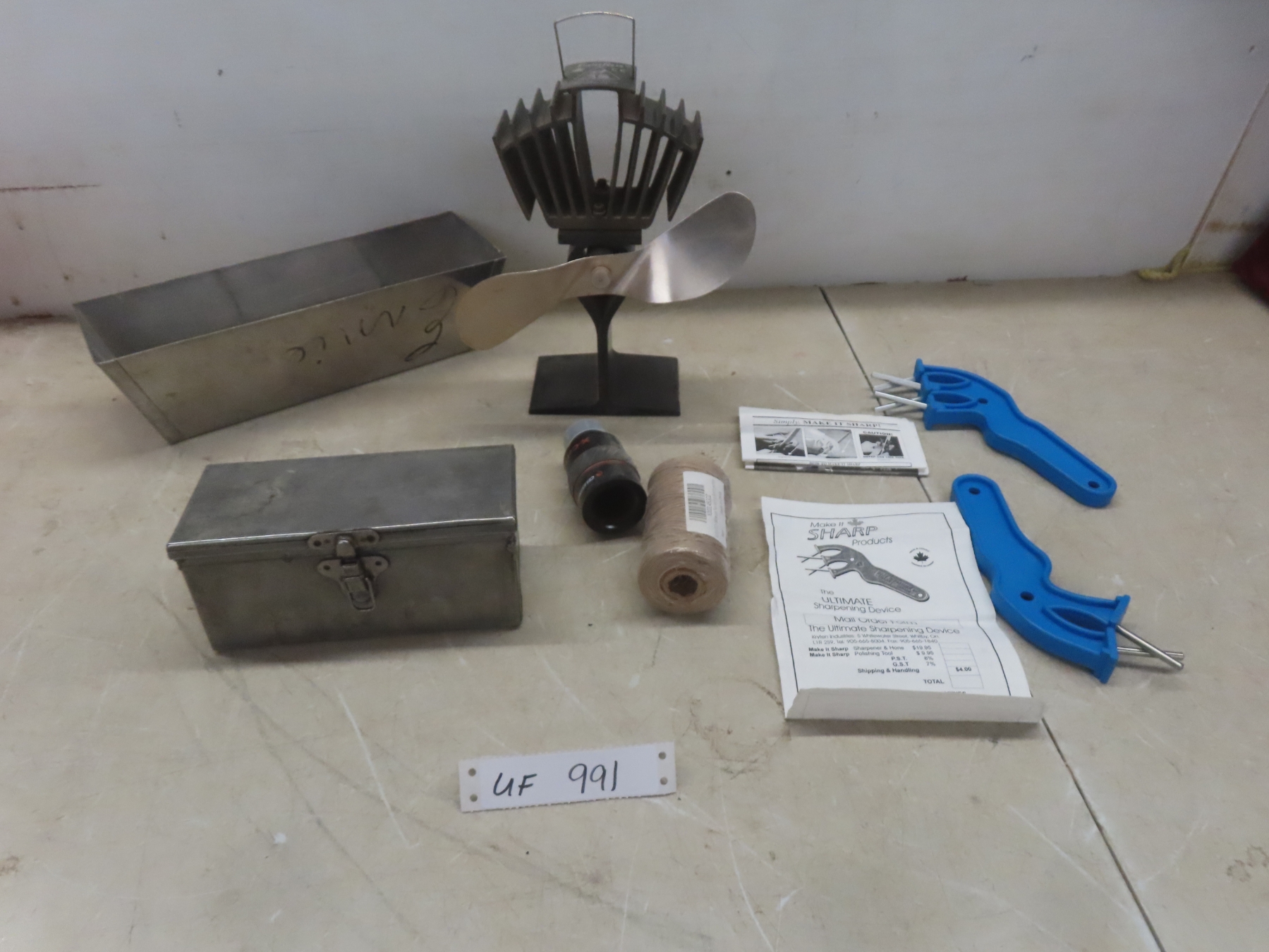 Mudders Tray, Wood Stove Fan, Whetstone Sharpening Device, Stainless Steel Box, and More