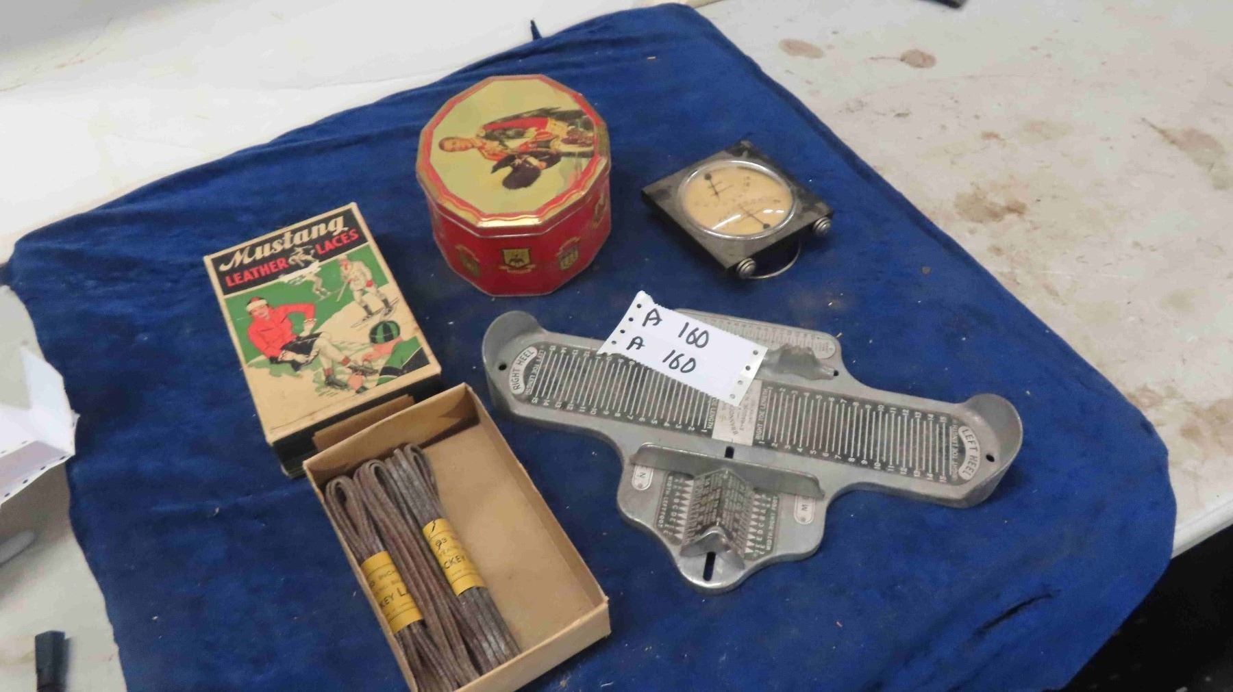 Mustang Leather Laces - 3 Sets with Vintage Box, Royalty Tin, Shoe/ Foot Measure, Temp/ Humidity Gauge