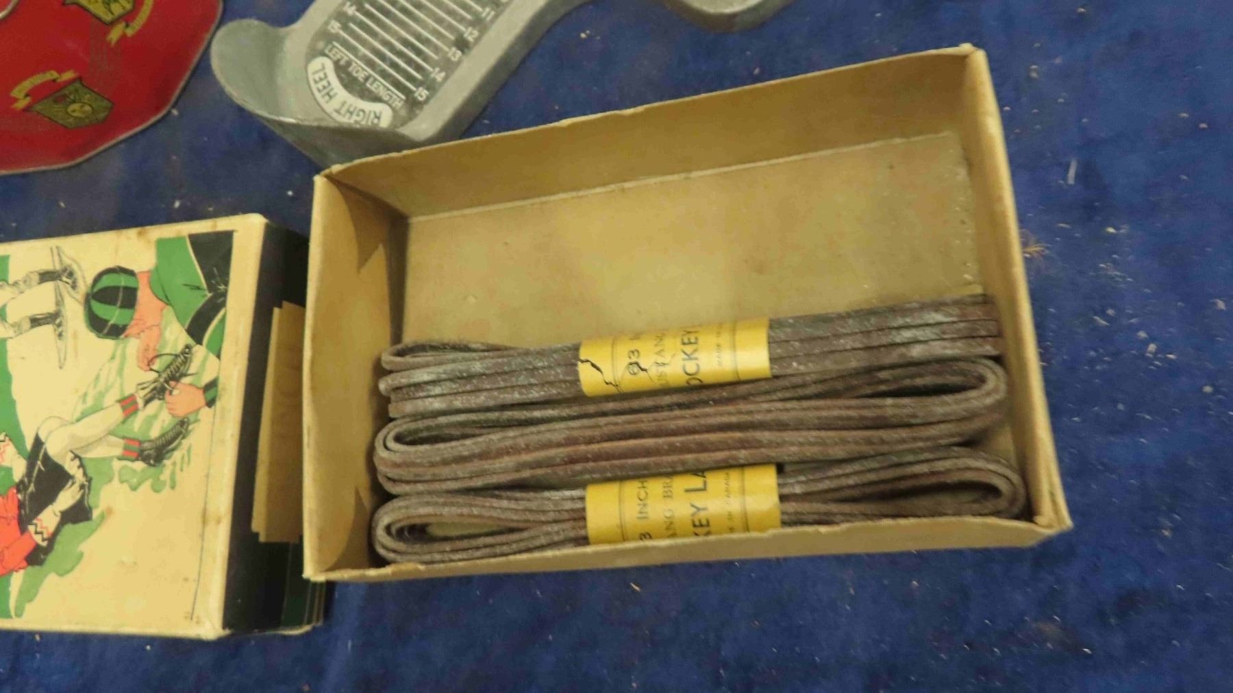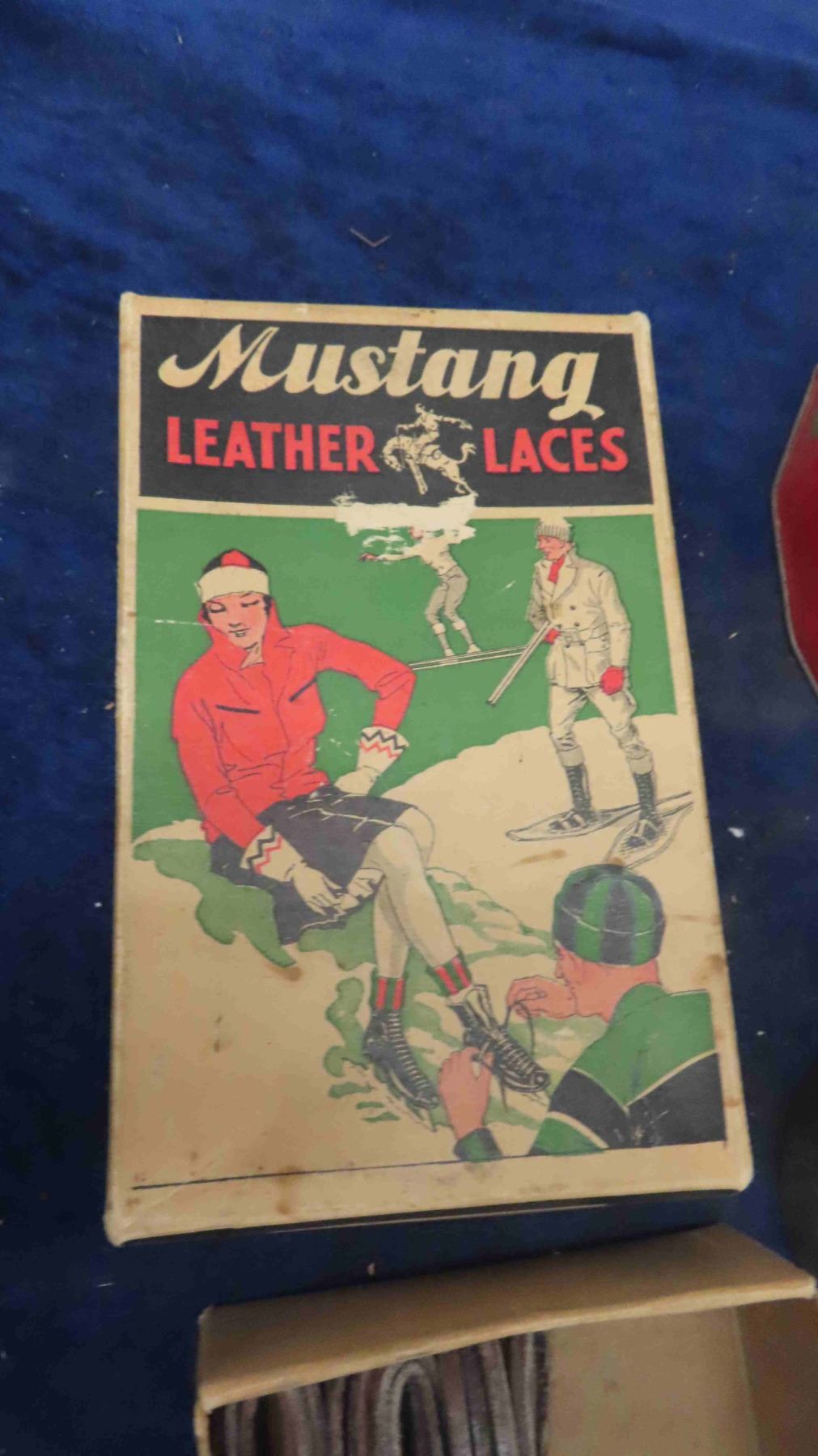 Mustang Leather Laces - 3 Sets with Vintage Box, Royalty Tin, Shoe/ Foot Measure,