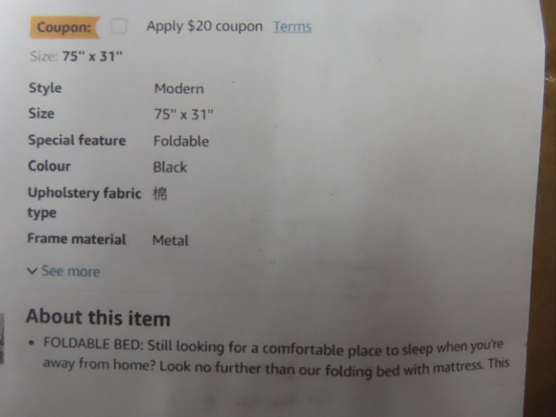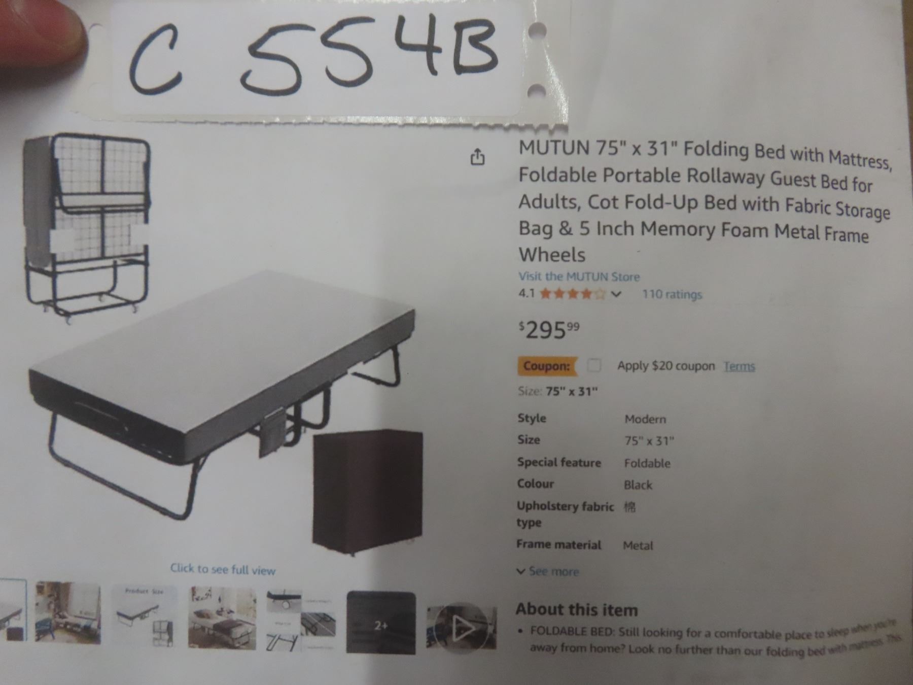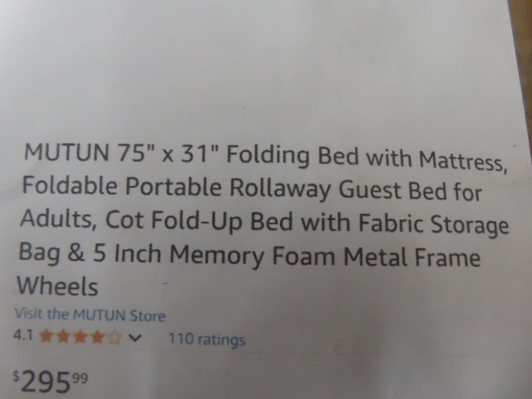 Mutun 75''x31'' Folding Bed with Mattress, Foldable Portable Rollaway Guest Bed for Adults, Cot Fold-up Bed With Fabric Storage Bad and 5 inch Memory Foam Metal Frame Wheels