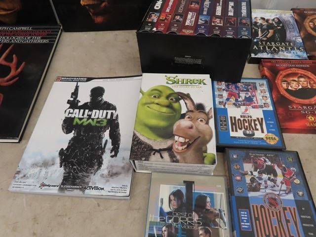 Mythology Books, Stargate Sereied, Hockey DVDs, Shrek, VHS James Bond