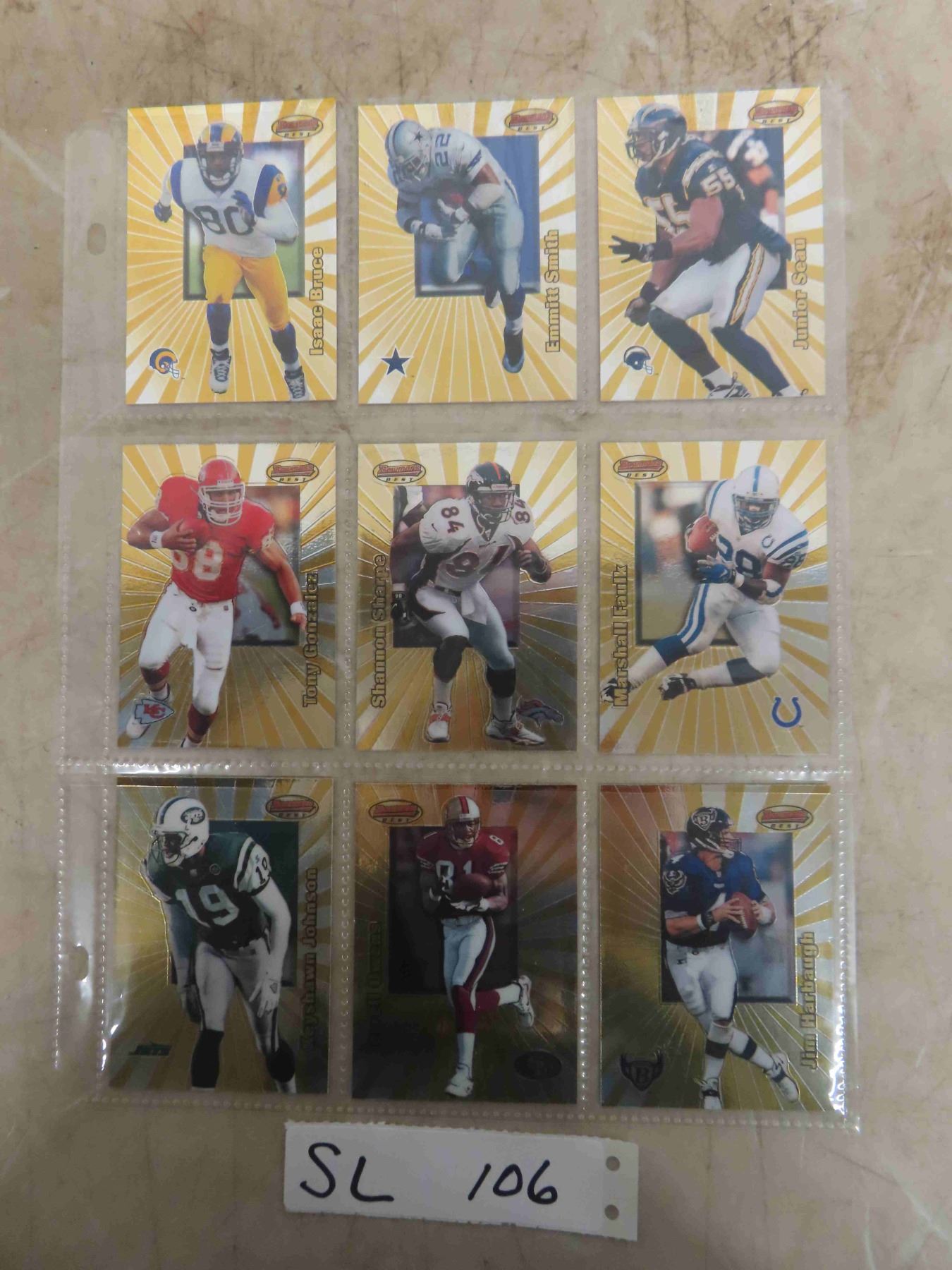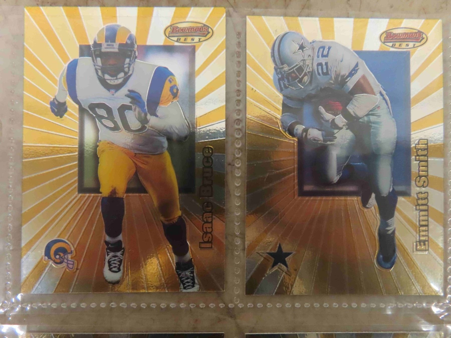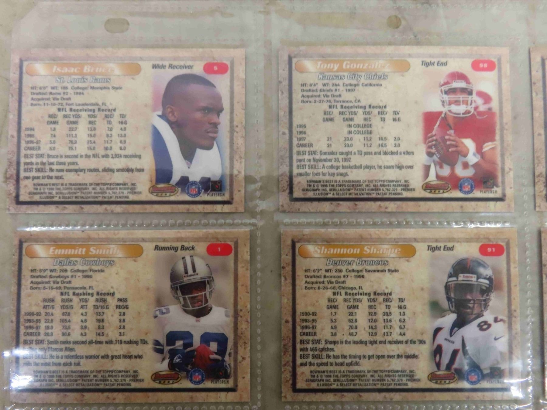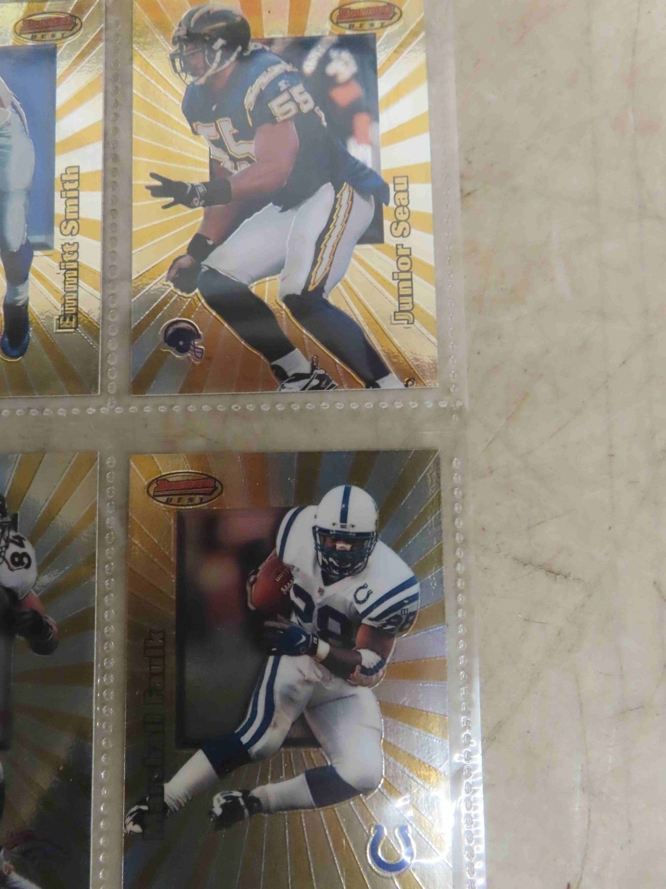 NFL Bowmans Best 9 Stars Chrome Shiny Cards - Junior Seau, Emmitt Smith, Issac Bruce, Tony Gonzalez, Shannon Sharpe, Marshall Faulk, Towens, Jim Harbaugh