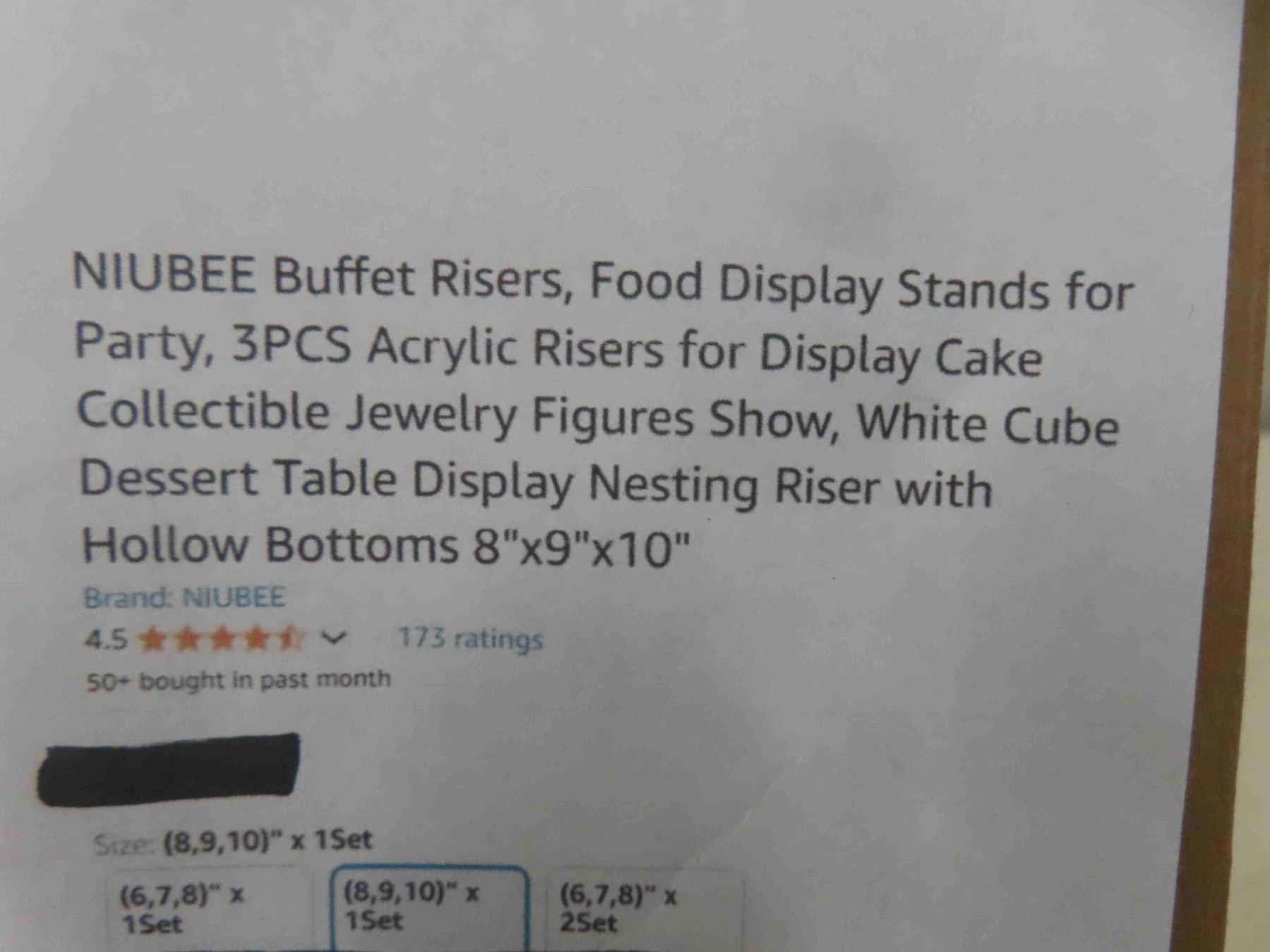 NIUBEE Buffet Risers, Food Display Stands for Party, 3PCS Acrylic Risers for Display Cake Collectible Jewelry Figures Show, White Cube Dessert Table Display Nesting Riser with Hollow Bottoms 8"x9"x10" - New or Store Return