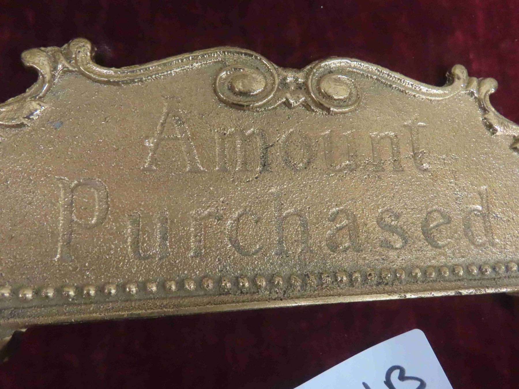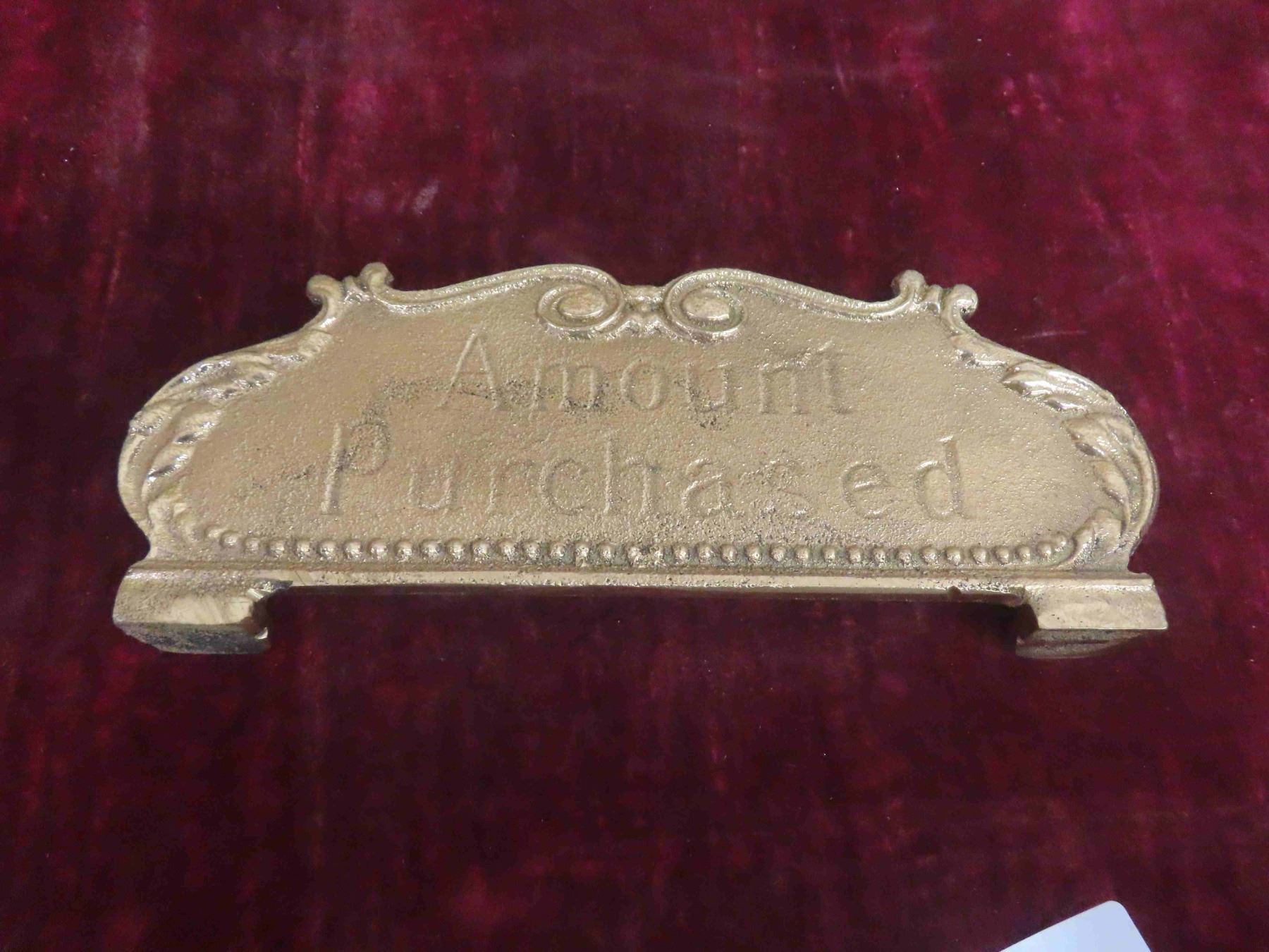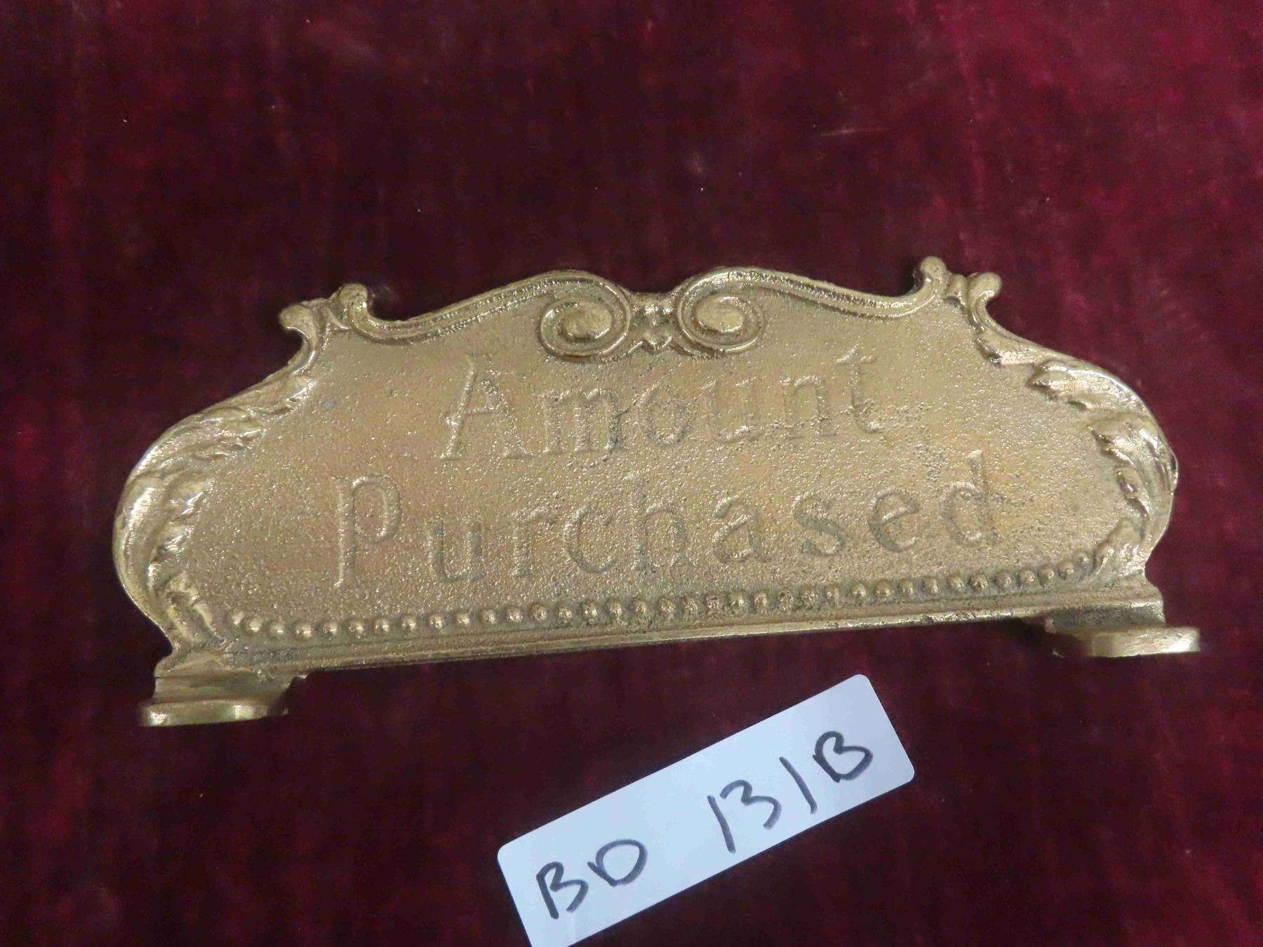 National Cash Register Brass Top Sign ''Amount Purchased'' 9.5''