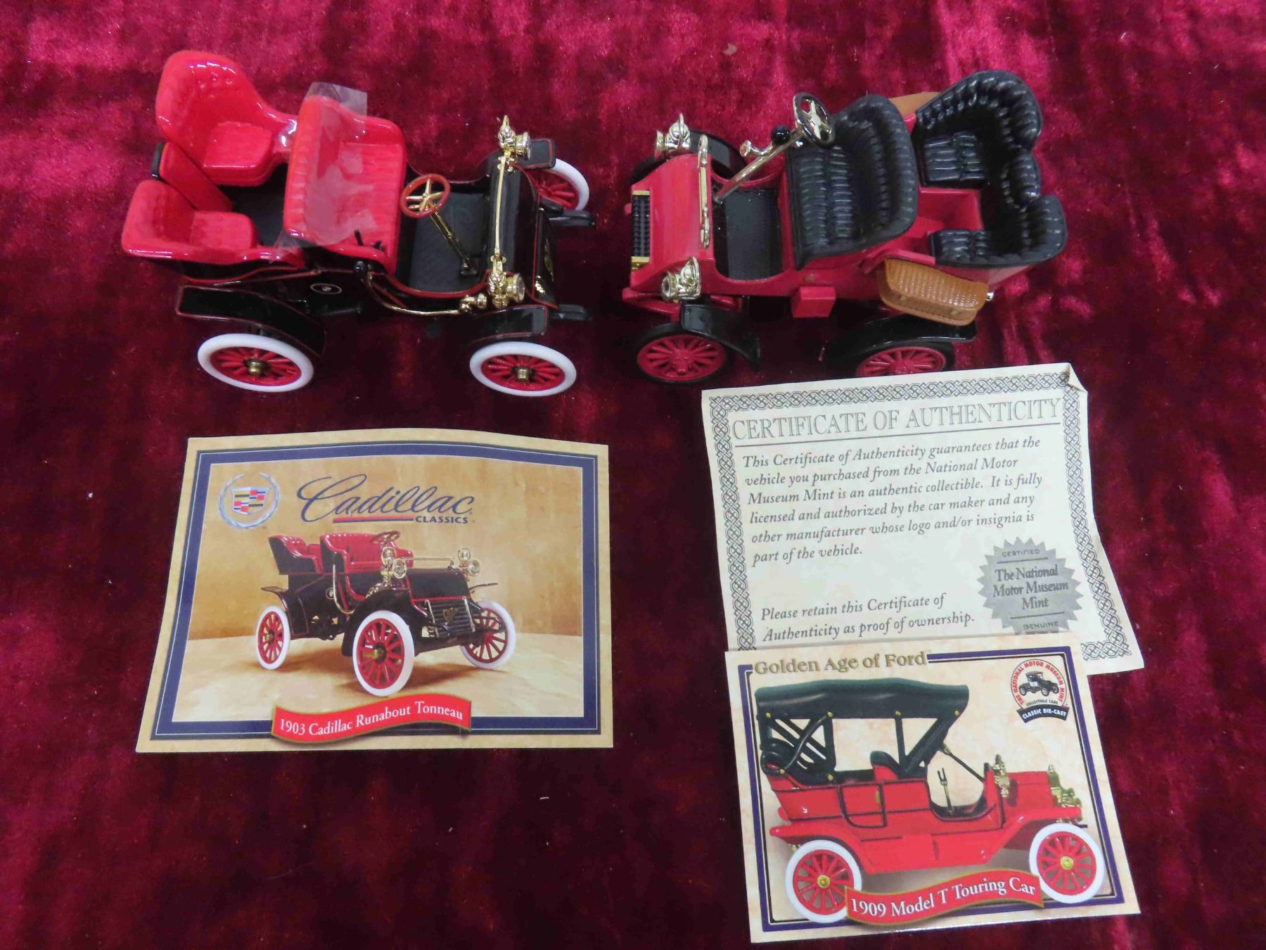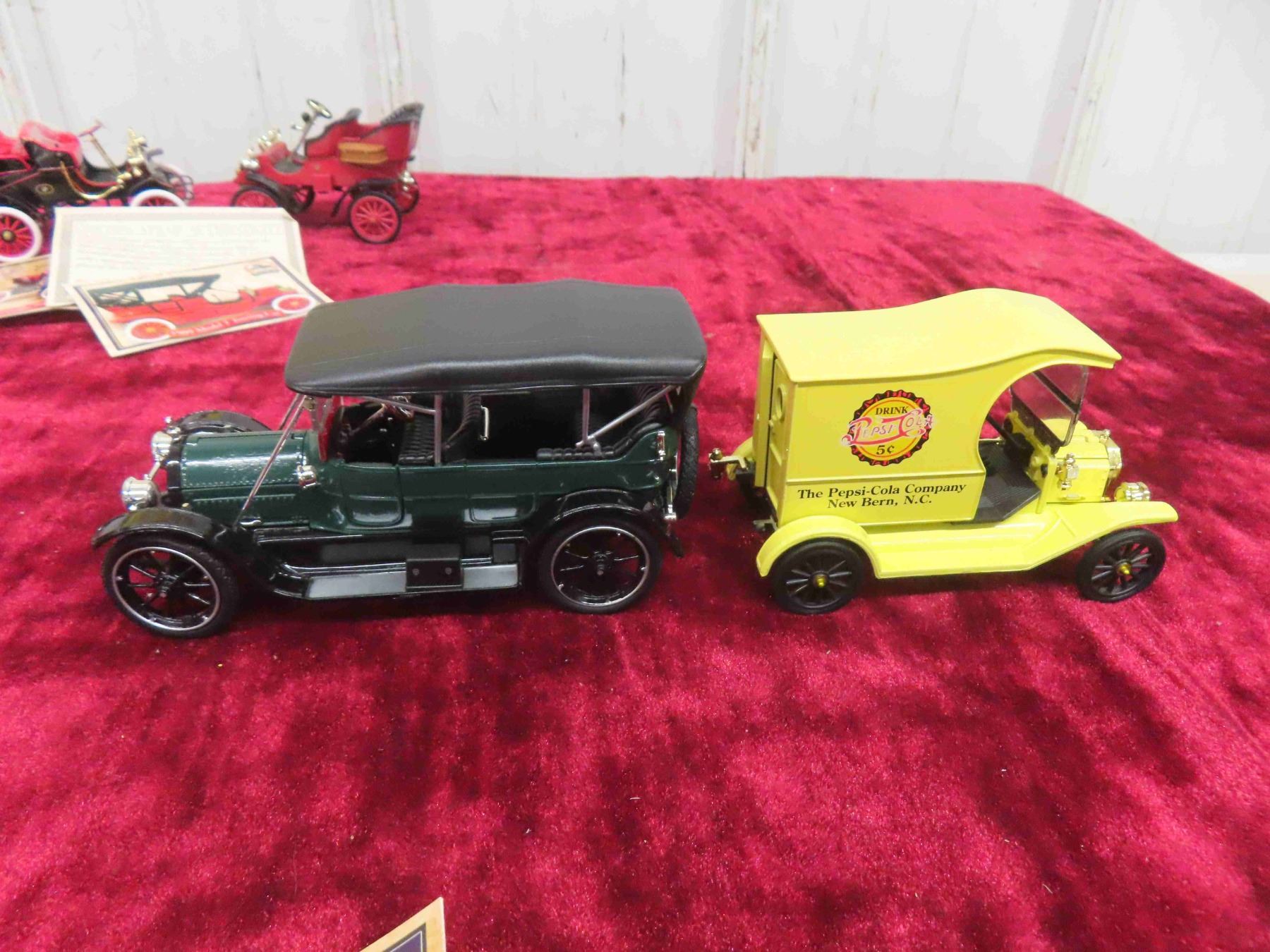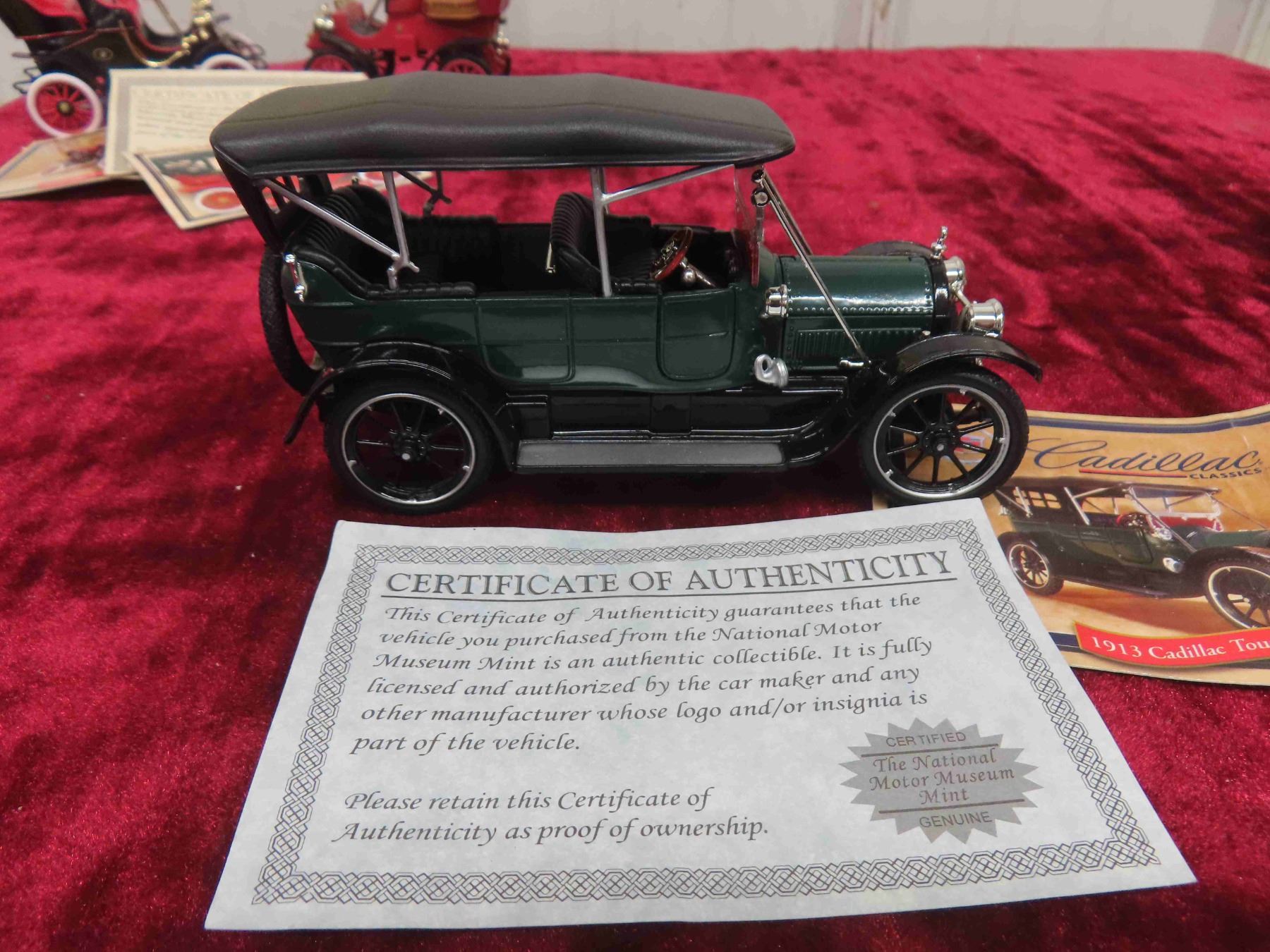 National Motor Museum Mint 1913 Caddy Touring Car + 1903 Caddy Runabout Tonneau, 1909 Model T Touring Car & Die Cast Pepsi Delivery Truck 2" x 2.75" x 4.5"