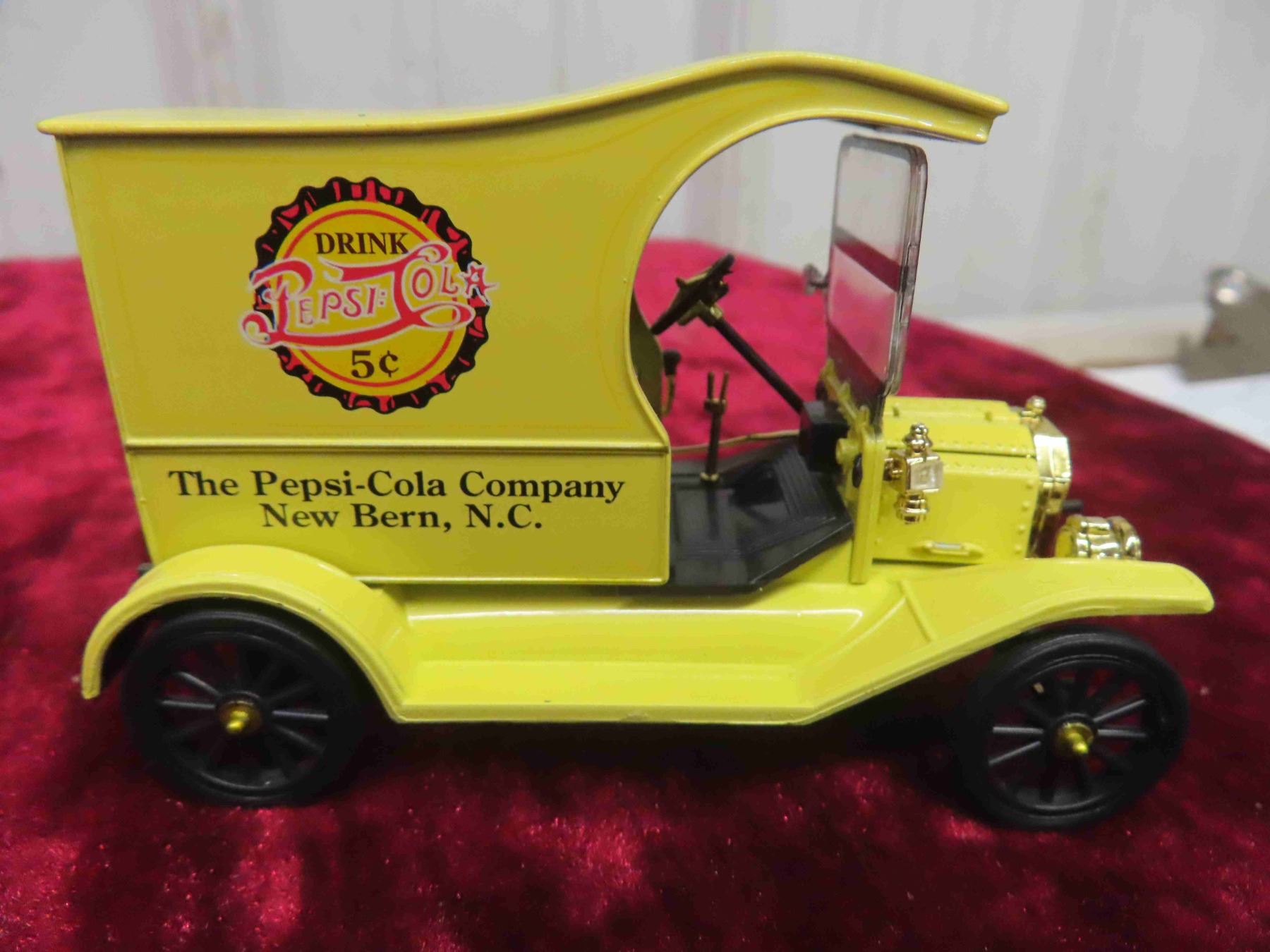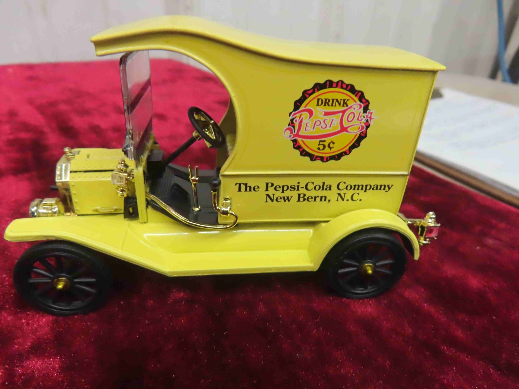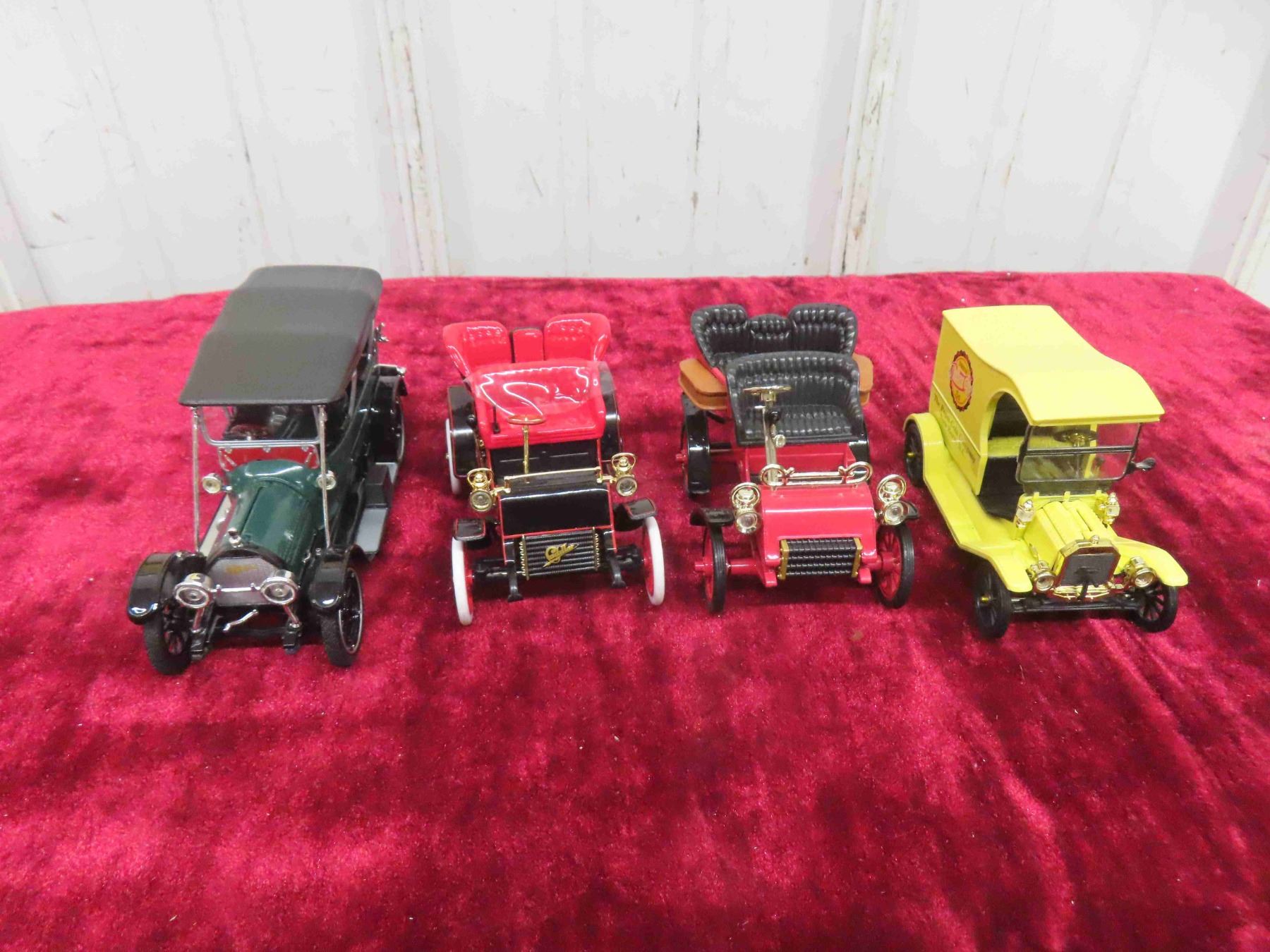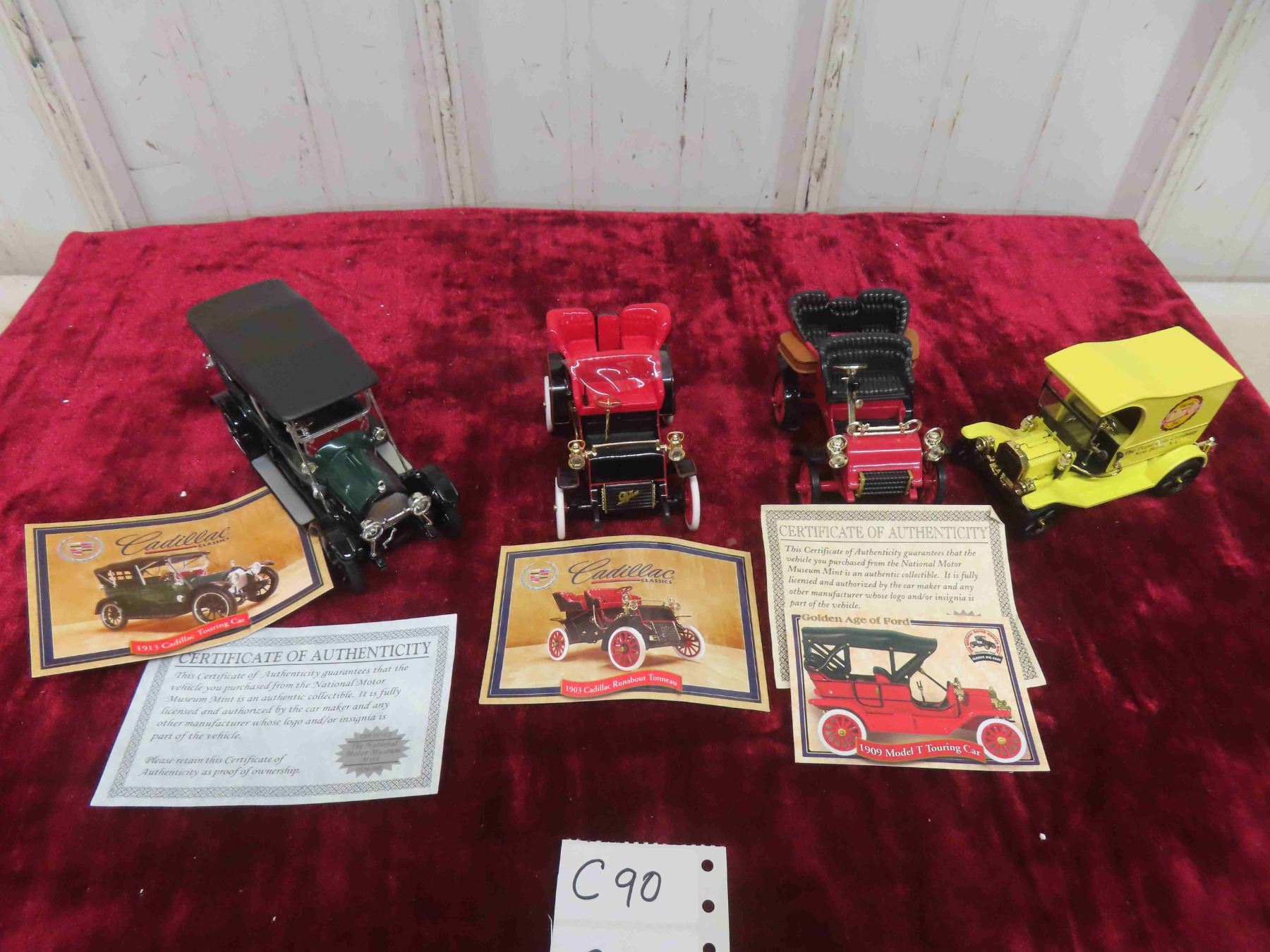 National Motor Museum Mint 1913 Caddy Touring Car + 1903 Caddy Runabout Tonneau, 1909 Model T Touring Car & Die Cast Pepsi Delivery Truck 2" x 2.75" x 4.5"