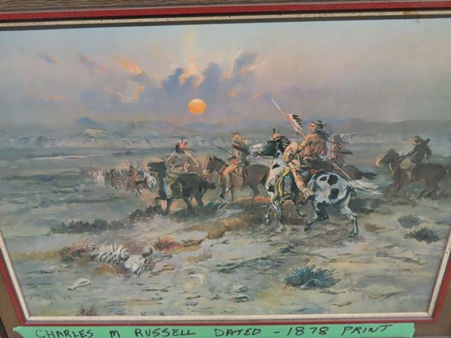 Native Old West Print- Dated 1878 By Charles M Russell, 17" x 23"