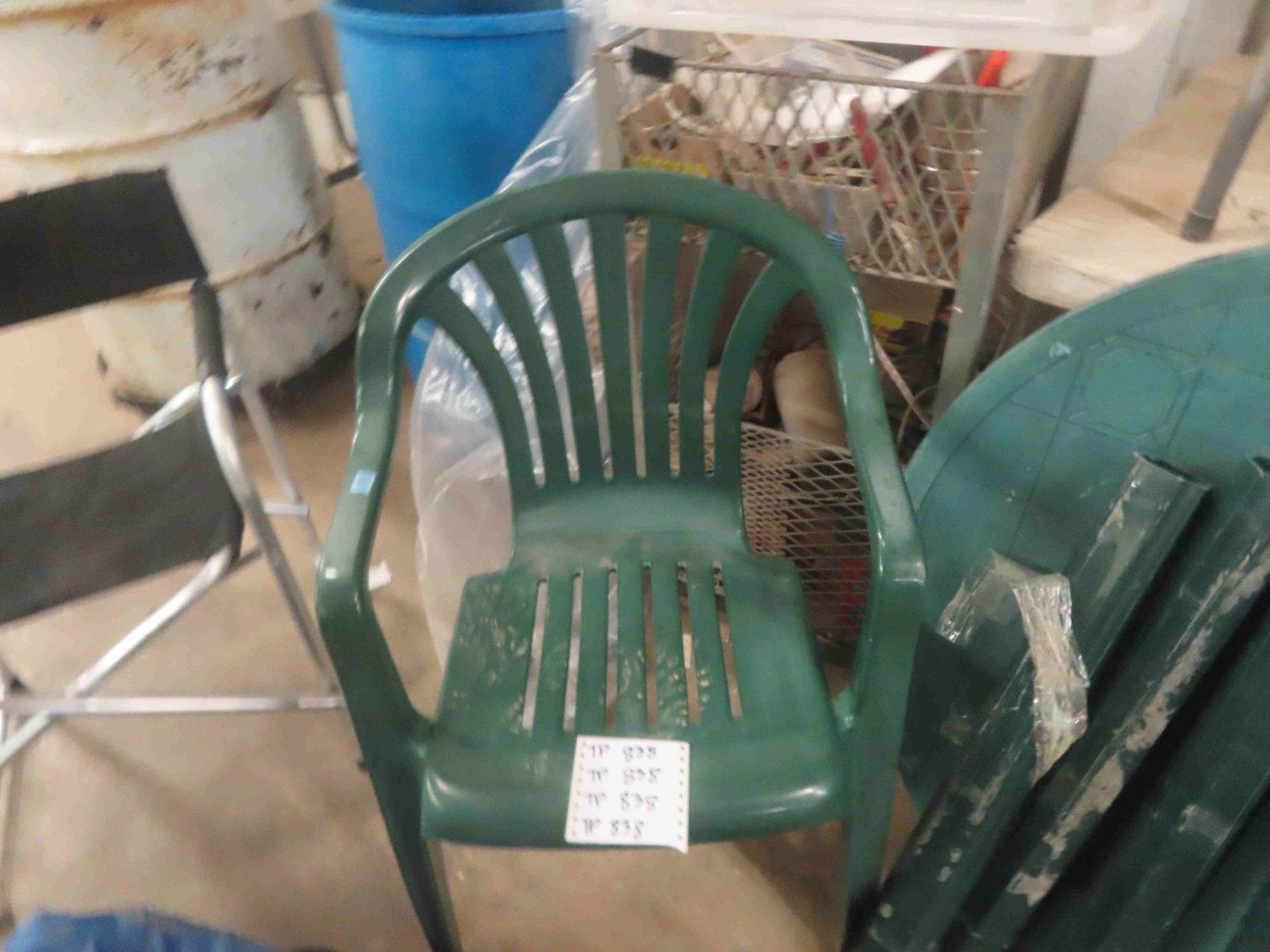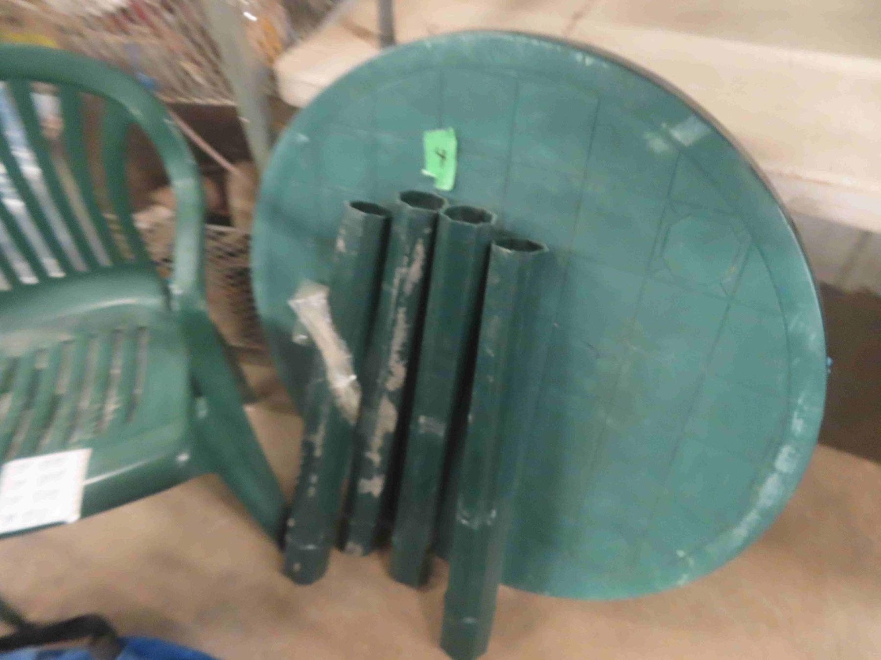 Nestle Umbrella, 3 Outside Chairs, Green Outdoor Table + Chair