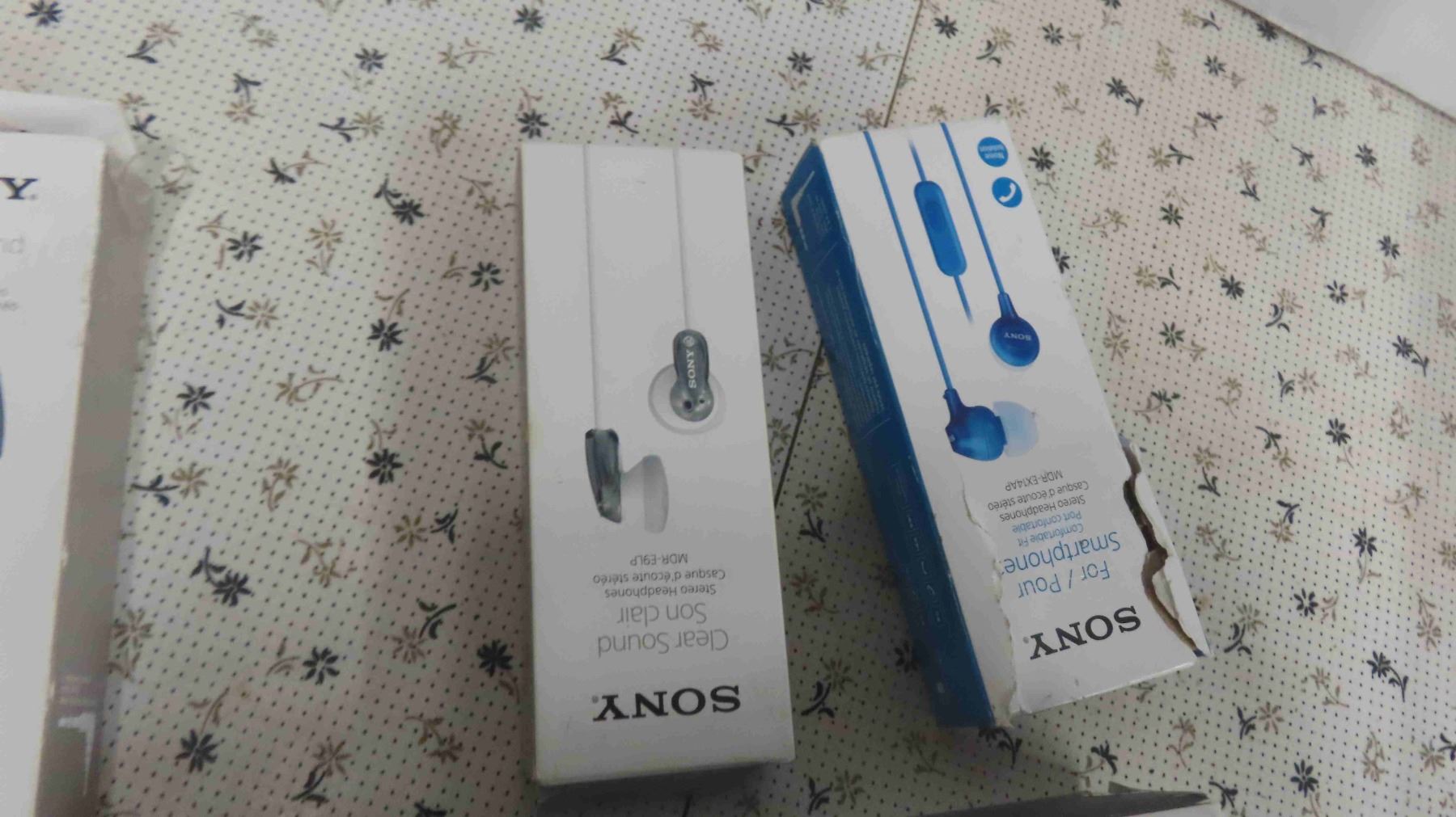 Never-Used 4 Sony Earphones , 1 Sony Headset