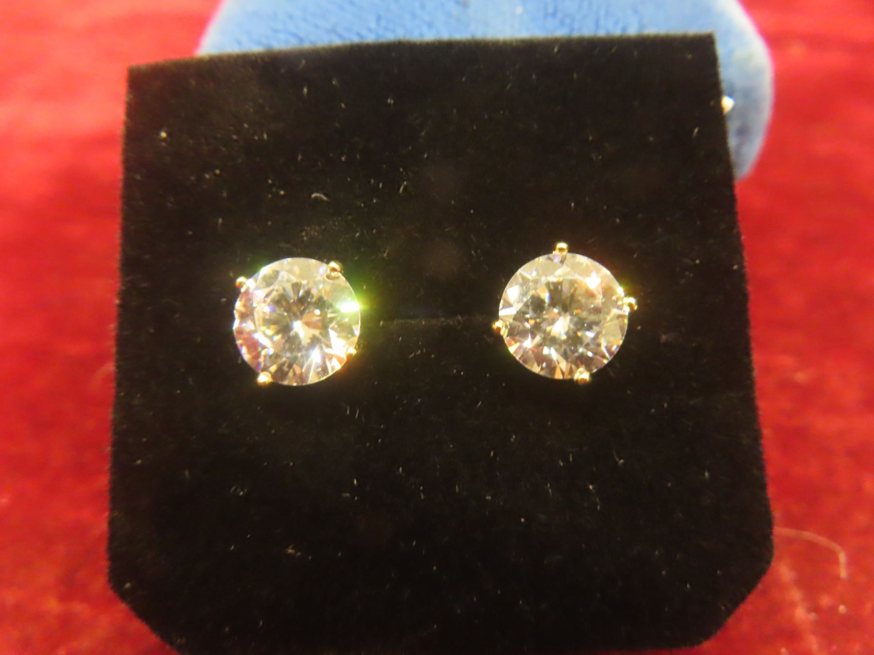 New 14K Gold-Plated 2.0 ct Cubic Zirconia Stud Earrings.