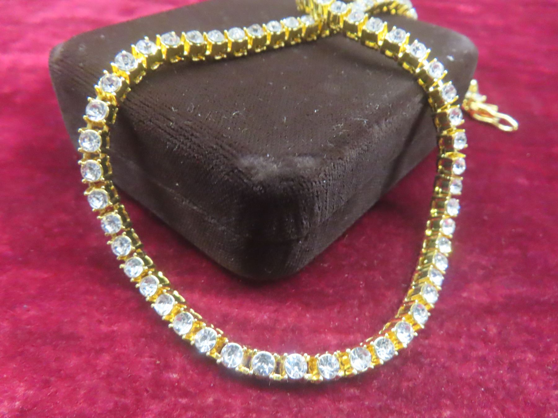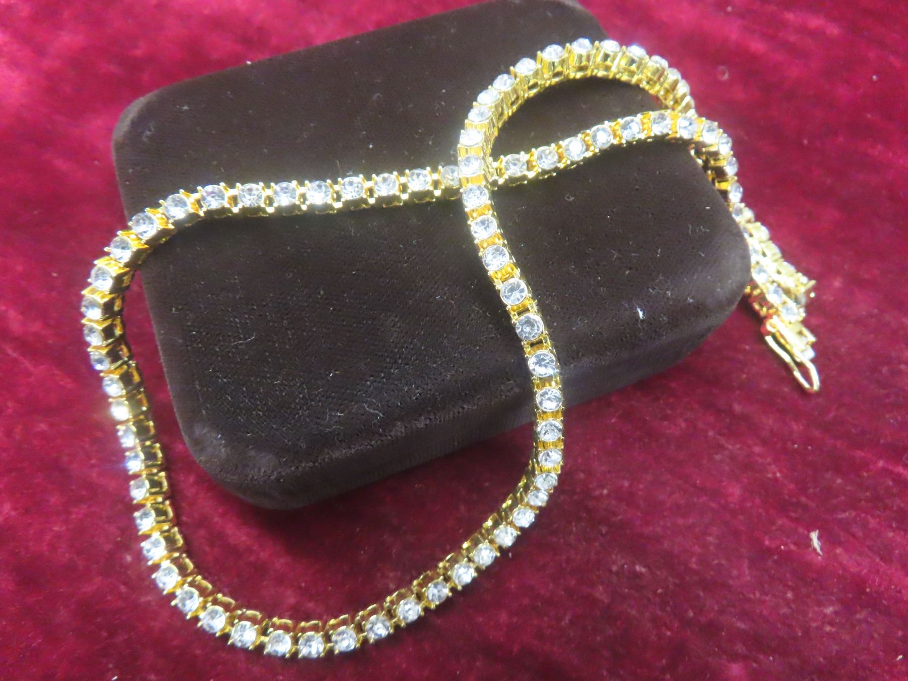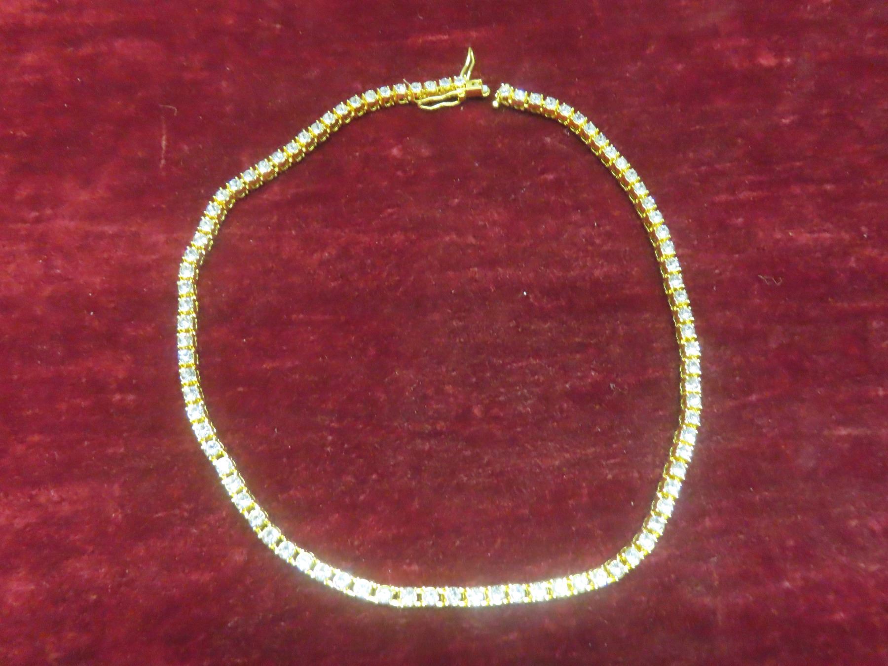 New 14K Gold-Plated 4.0 mm Cubic Zirconia Tennis Necklace, 18" Long.
