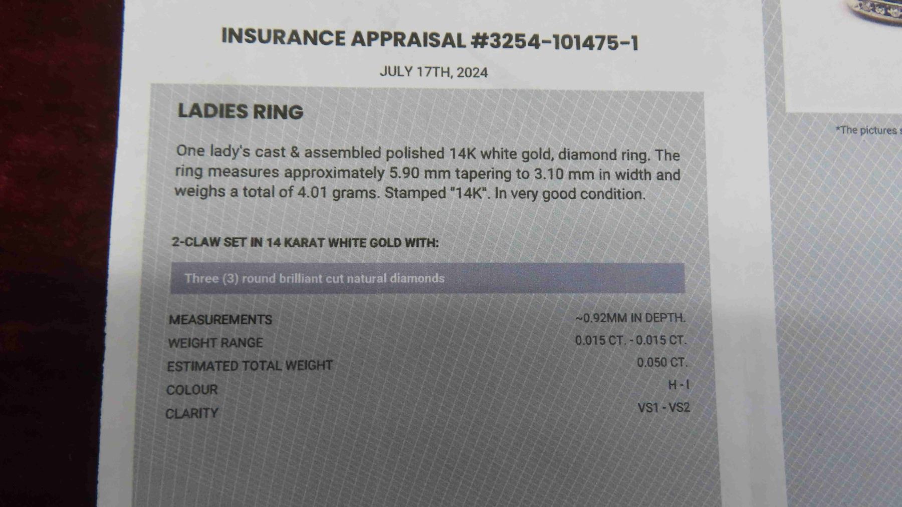 New 14kt Polished White Gold Diamond Ring Size 8-8.5 Total Weight 4.01 Grams with Appraisal