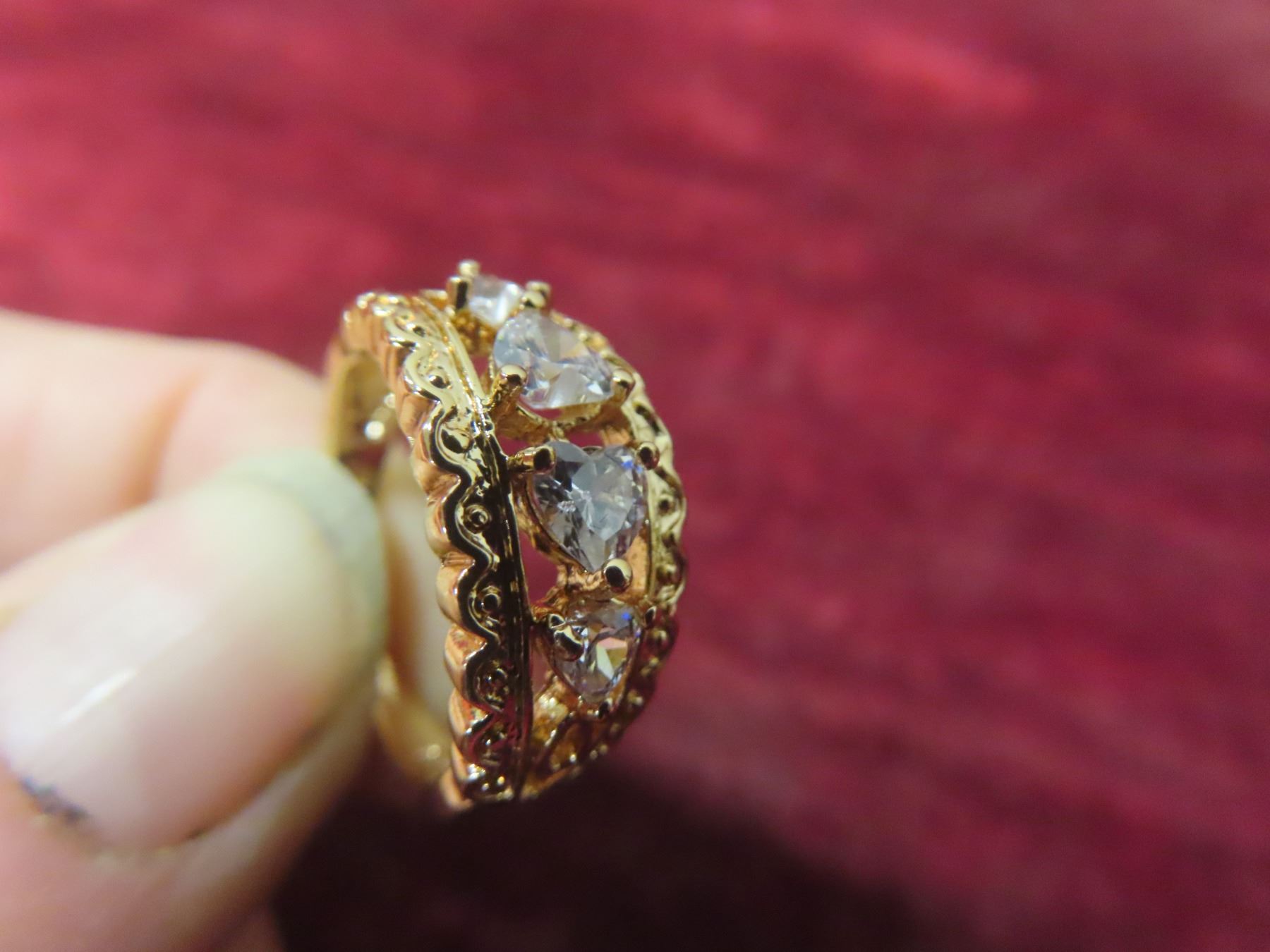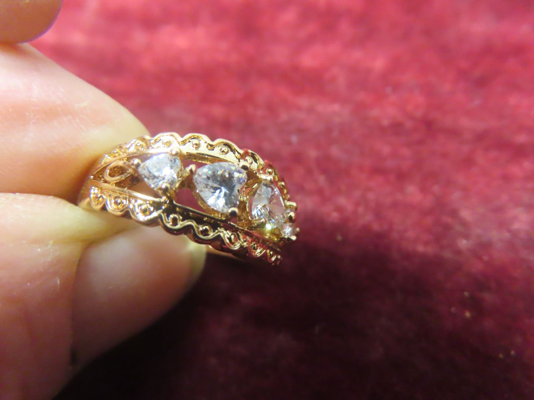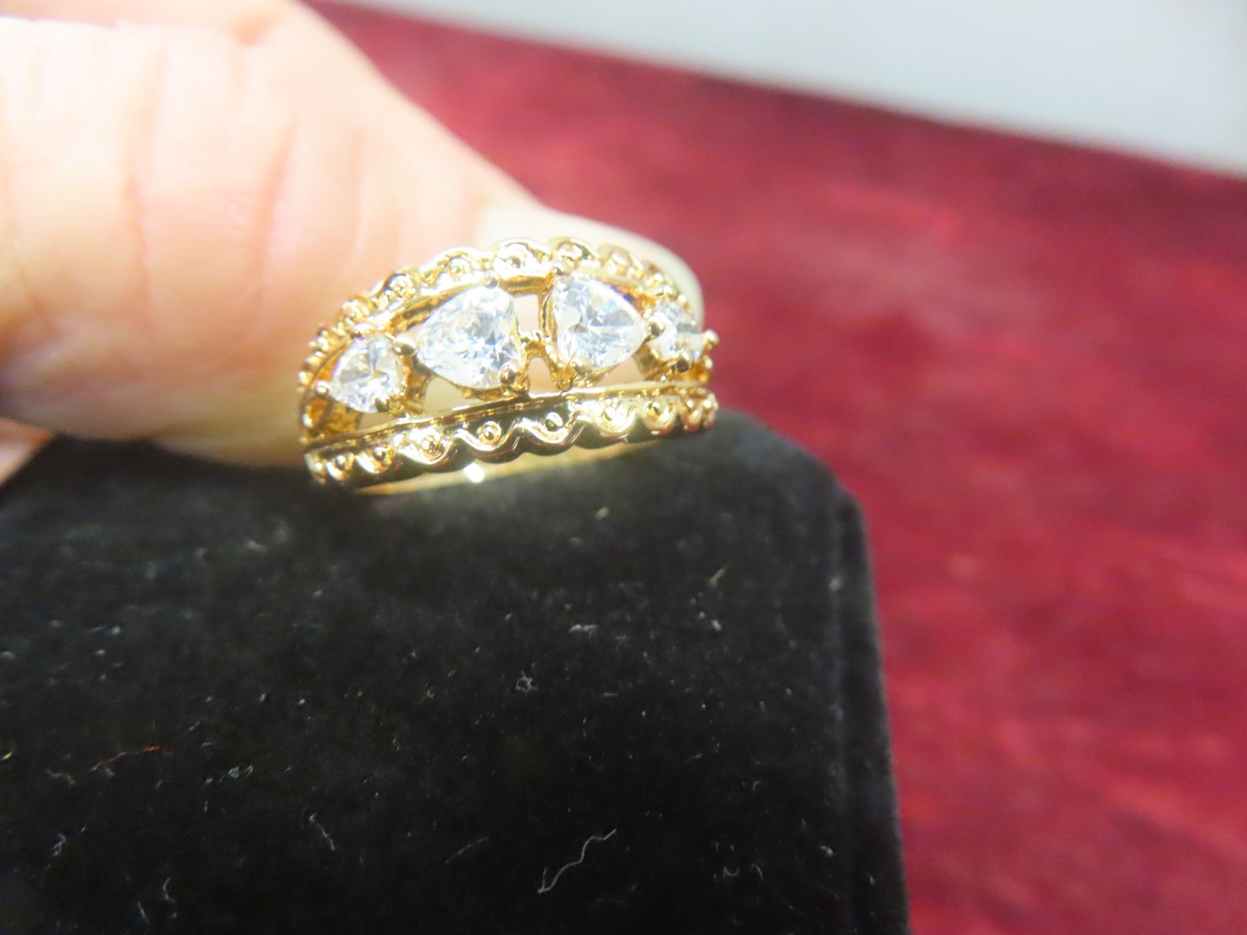 New 18K Gold-Plated Heart-Cut Cubic Zirconia Ring, Size 6.