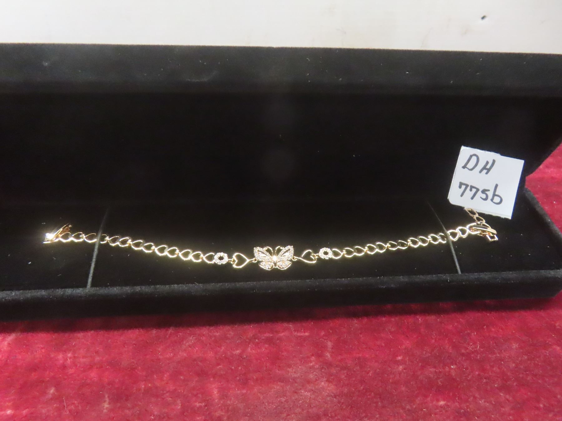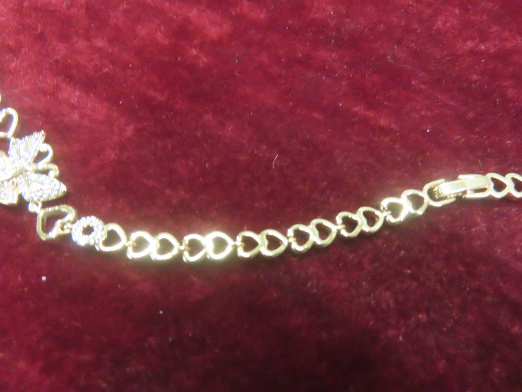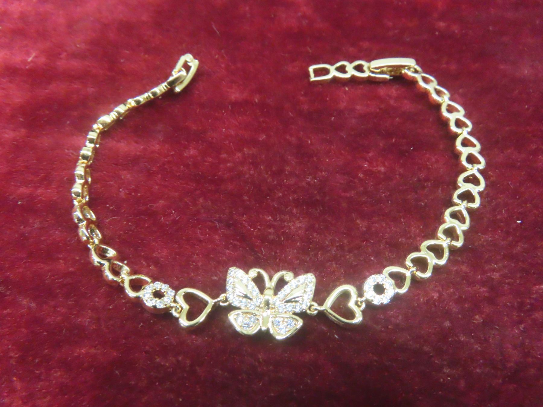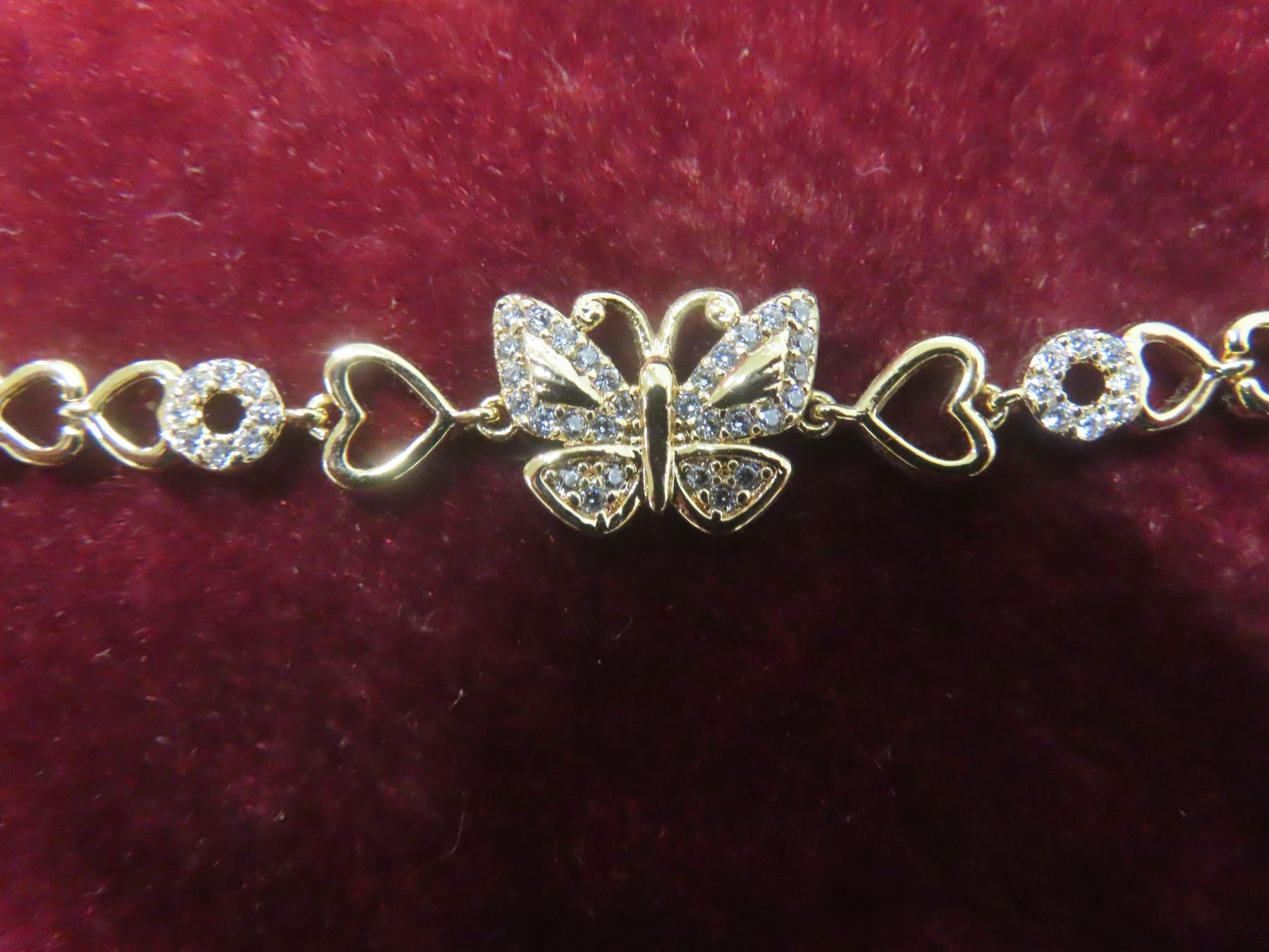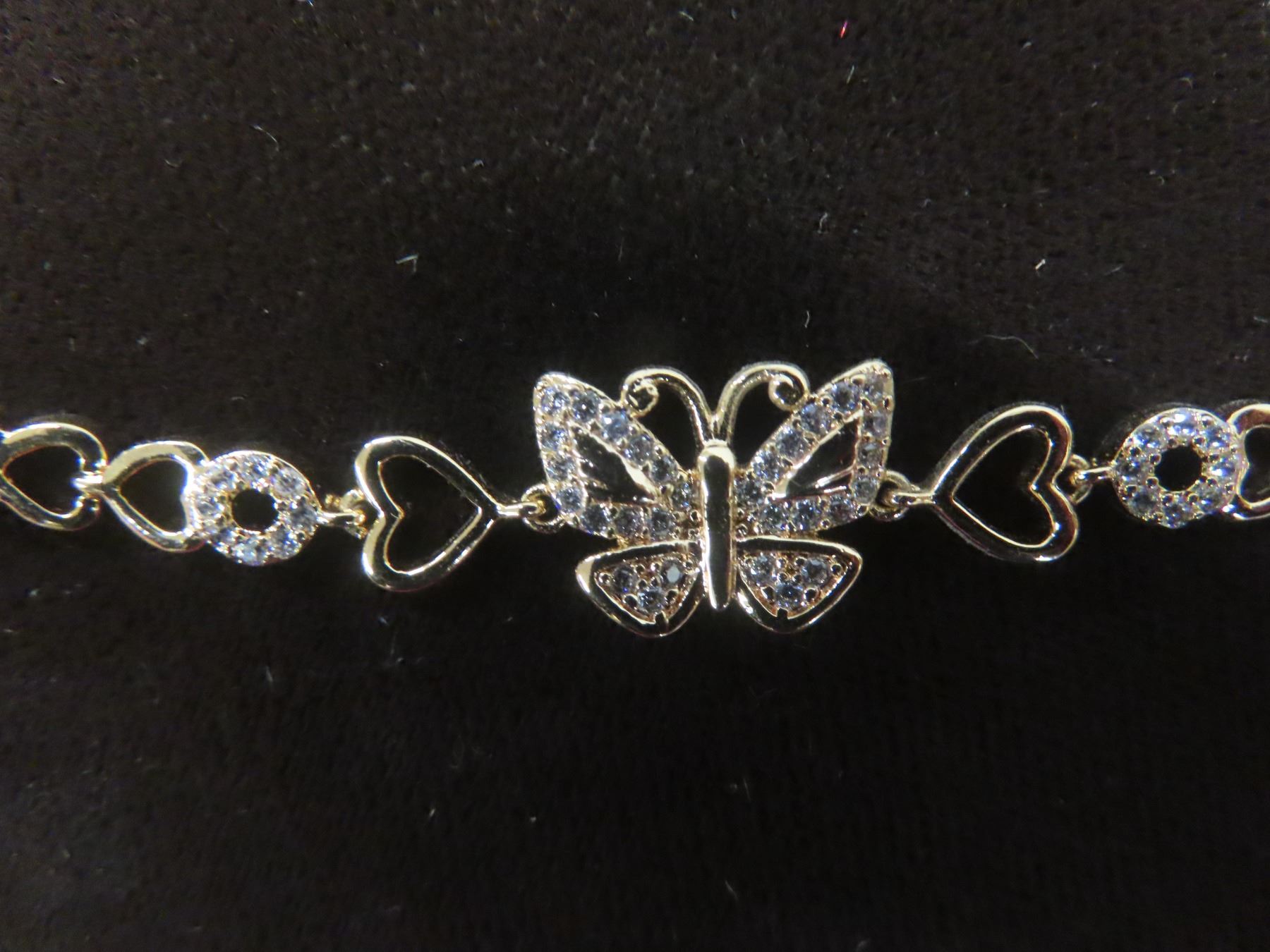 New 18K Gold-Plated Simulated Diamond CZ Heart/Butterfly Bracelet, Adjustable 6.5"–7.5".