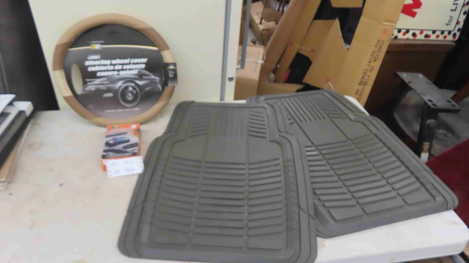 New 2 Floor Mats, Steering Wheel Cover, Dashboard Caddy