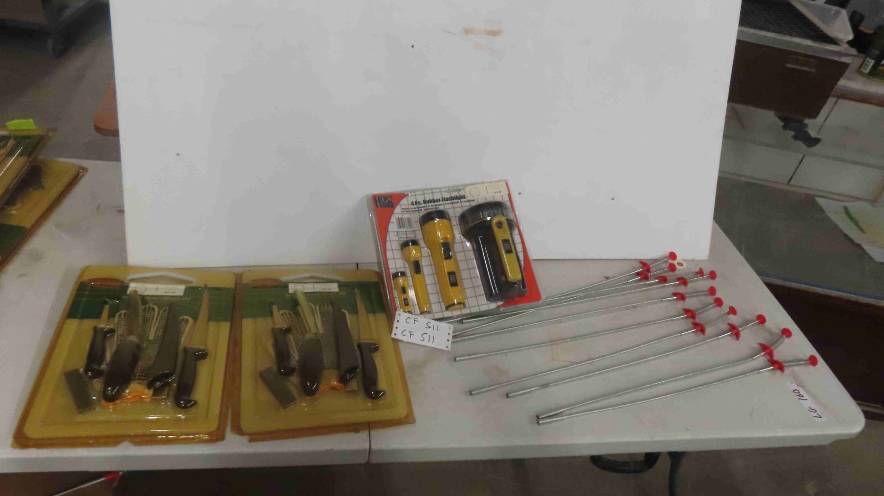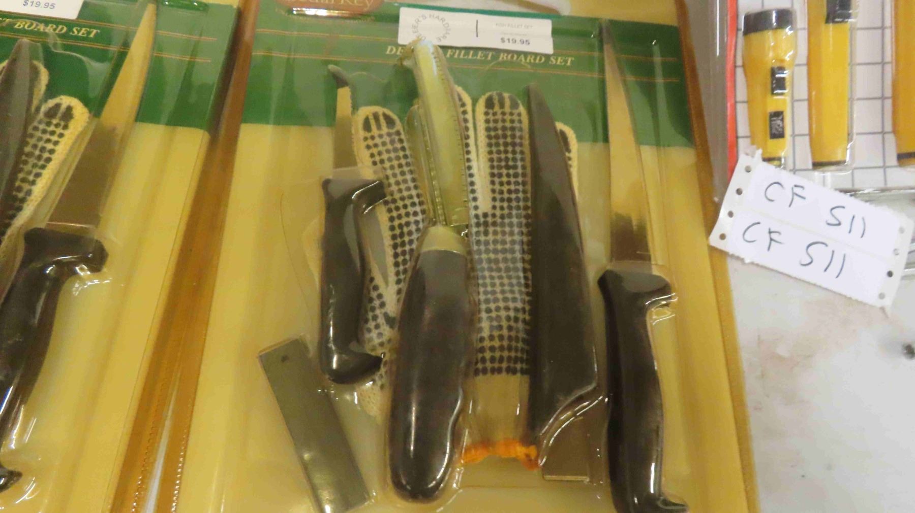 New 2 Piece Fish Filleting Set, 4 Piece Rubber Flashlight, 10 Pickup Claw Tools