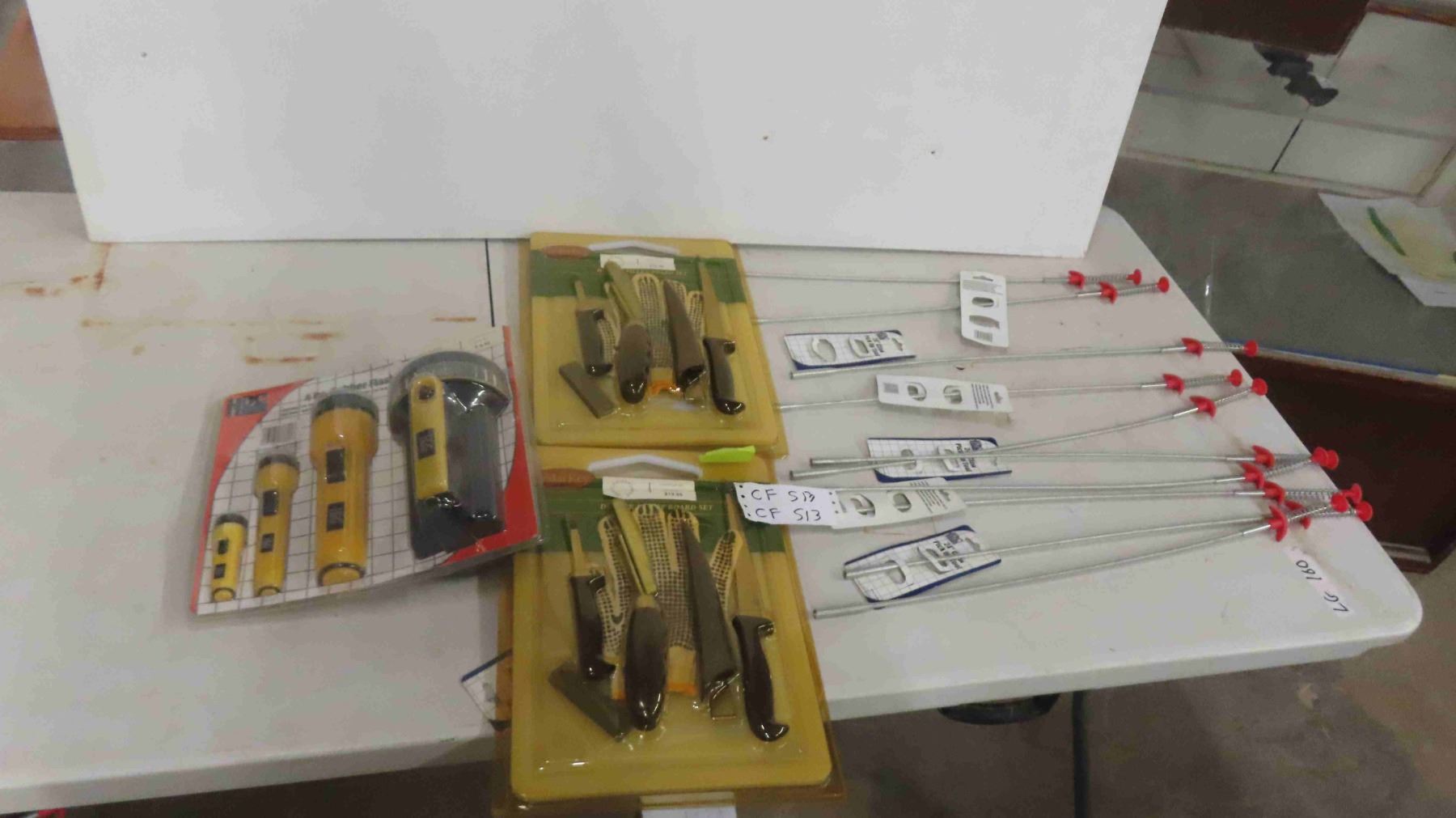 New 2 Piece Fish Filleting Set, 4 Piece Rubber Flashlight, 10 Pickup Claw Tools