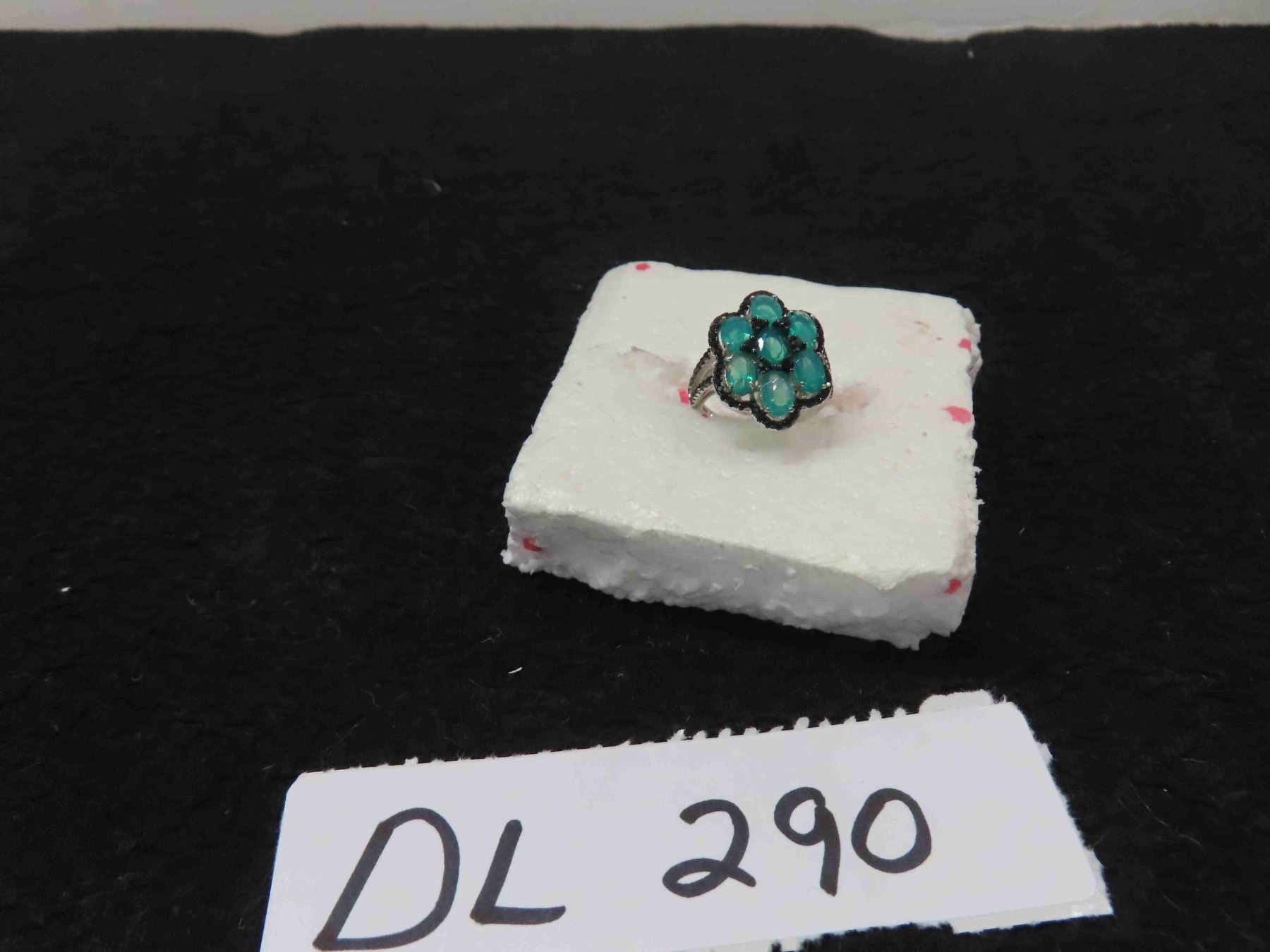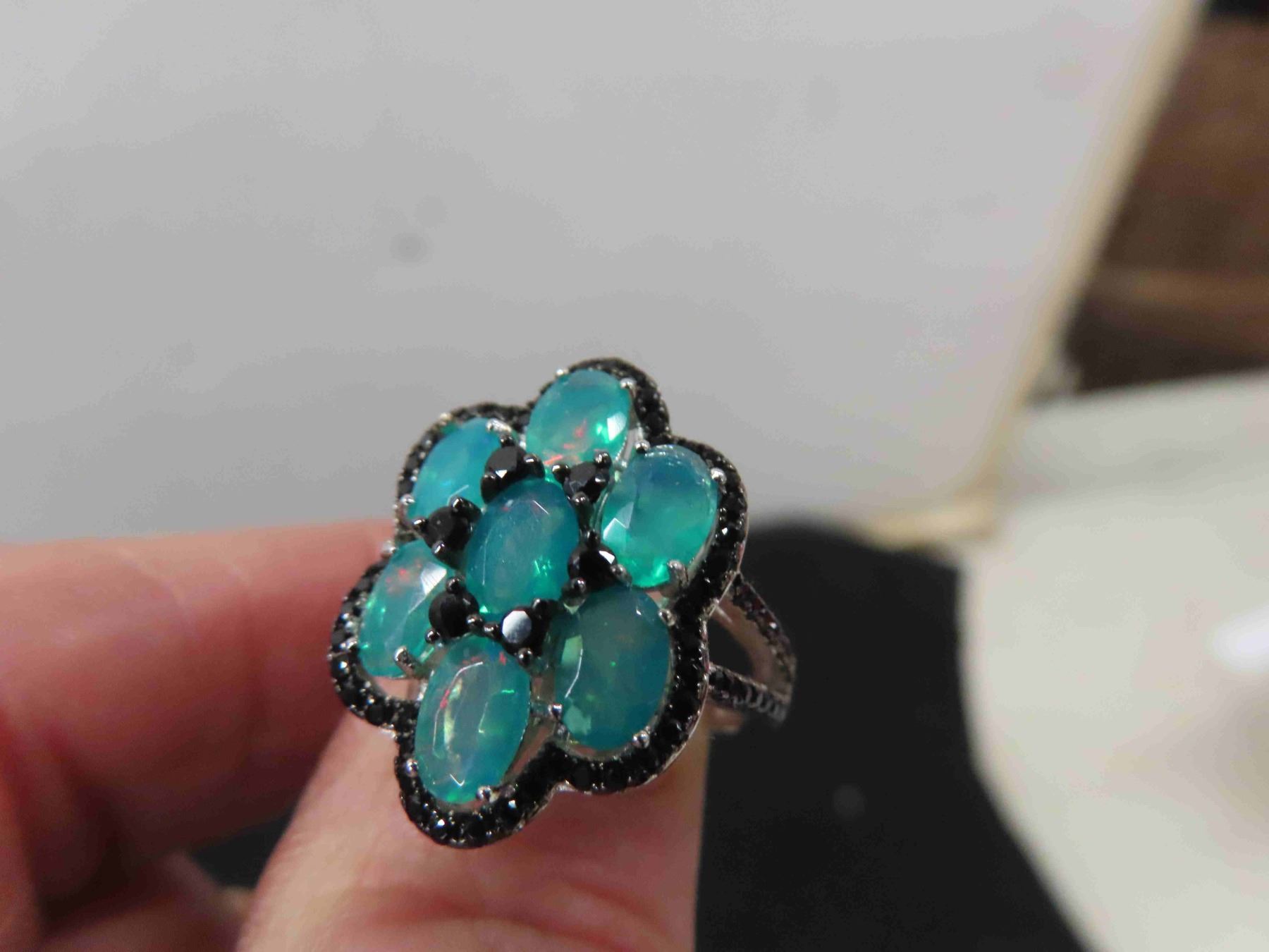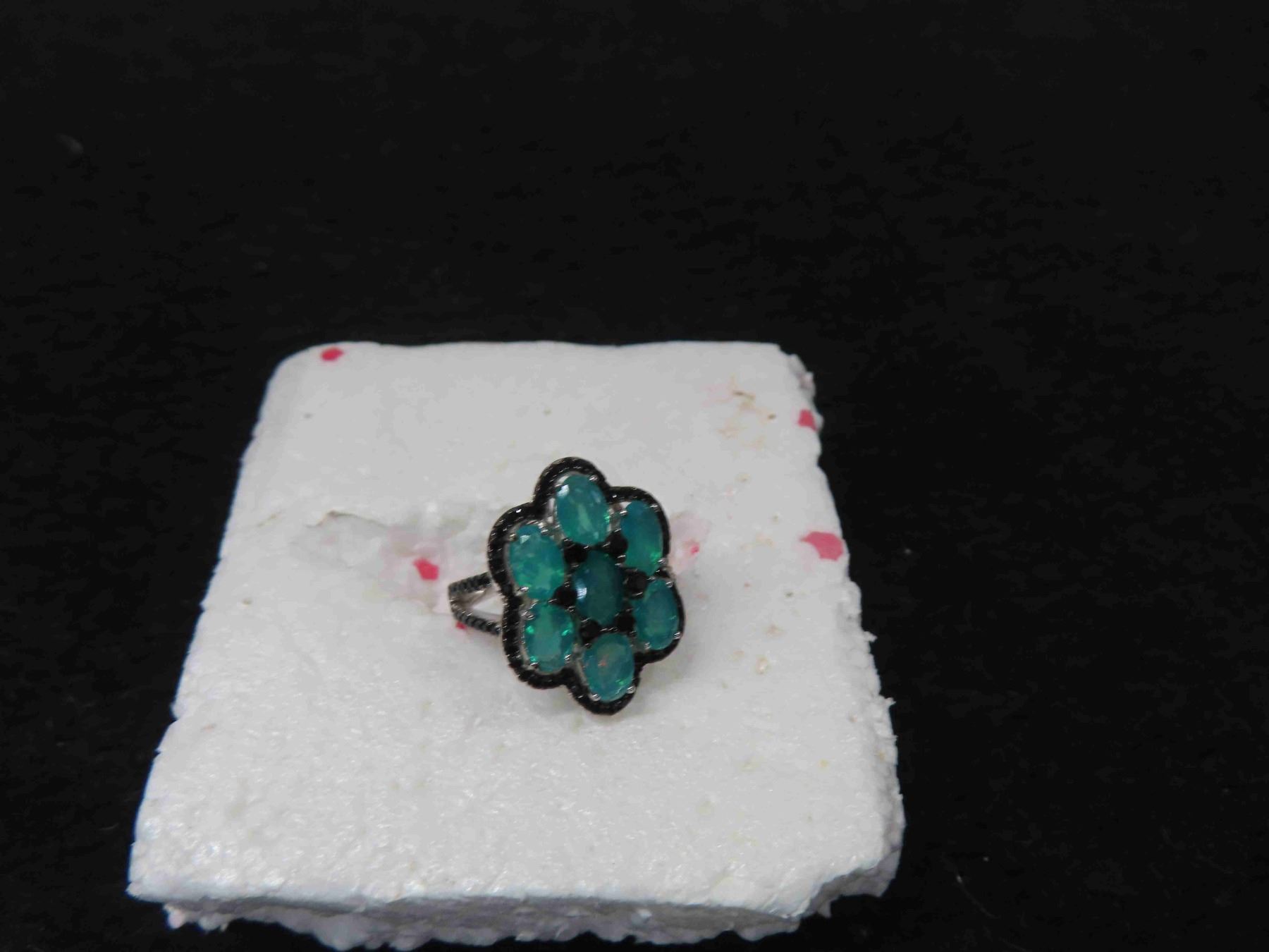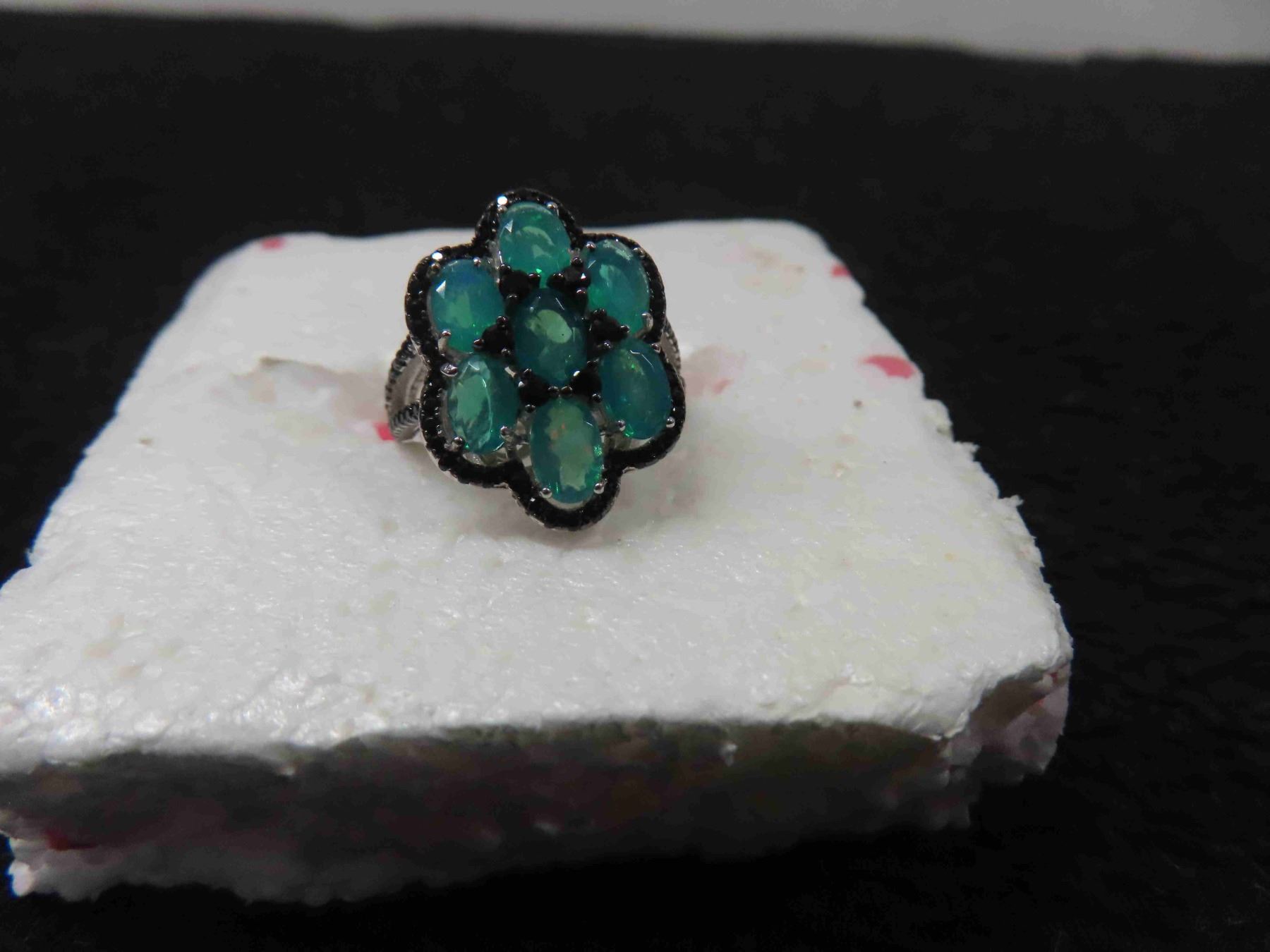 New 3.45ct Tropical Opal Surrounded by Black Spinel on Sterling Silver : Weight 4.58 Grams - Size 7