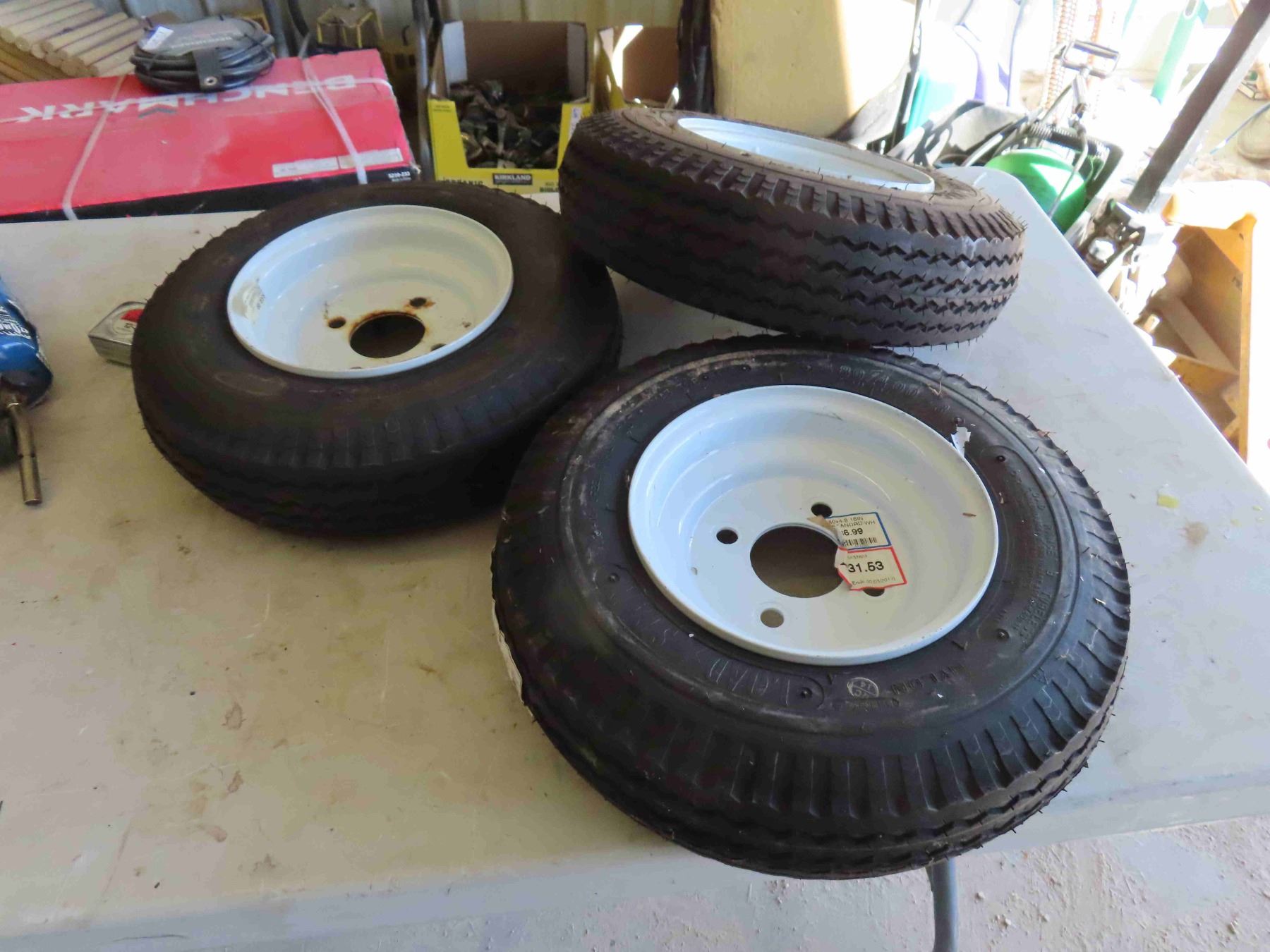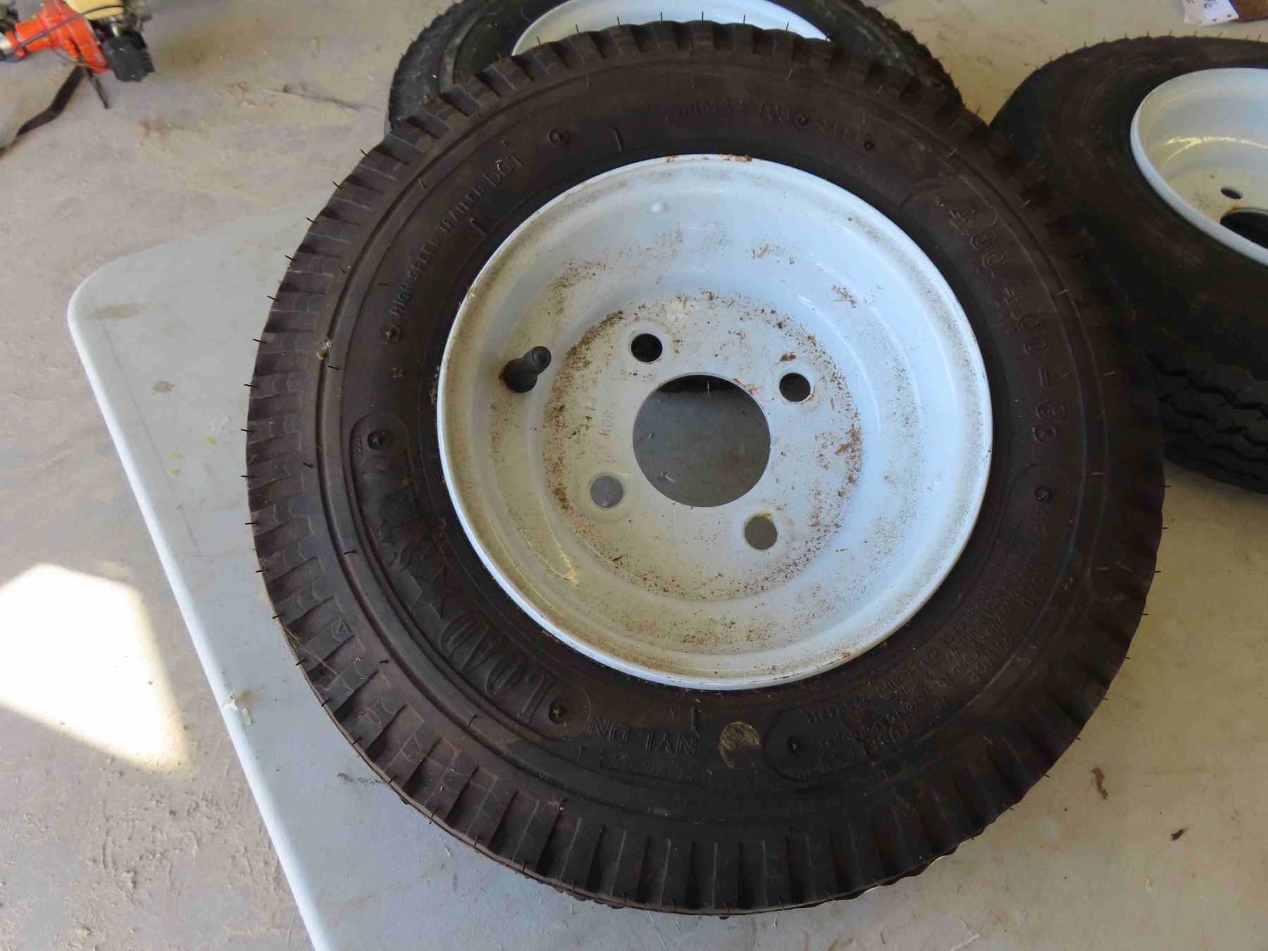 New 3 Trailer Tires on 4 Bolt Rims 4.80/4.00-8 & 16x5.00-8 Tire and Rim