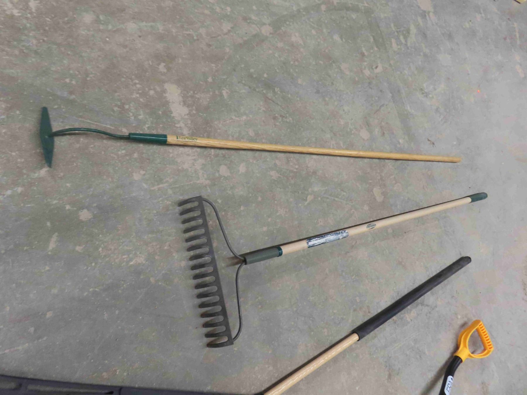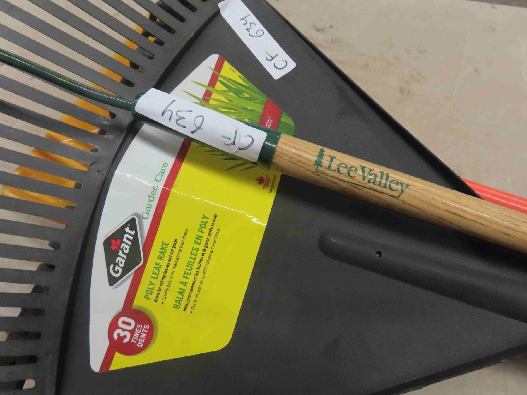 New 5 Hand Yard Tools : 3 Rakes All Different, Snow Shovel, Lee Valley Hoe