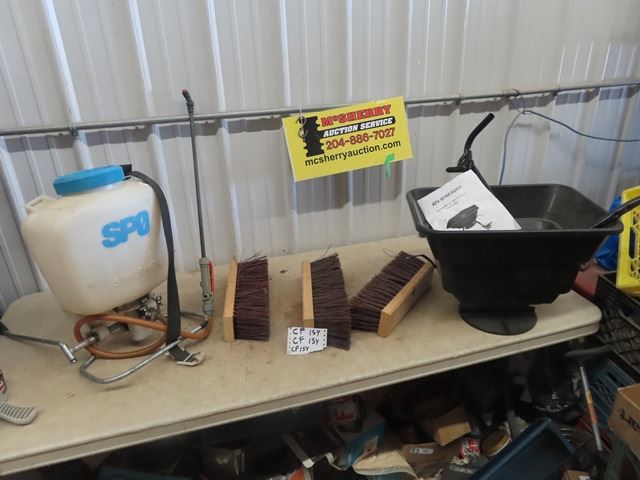 New ATV Spreader , Back Pack Sprayer, 3 New Broo Push Ends