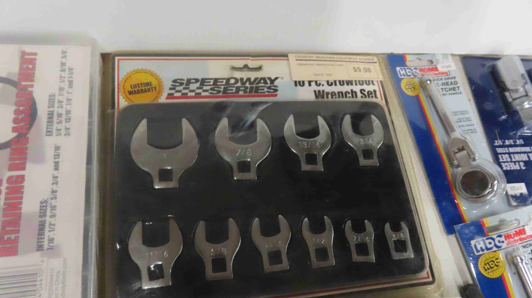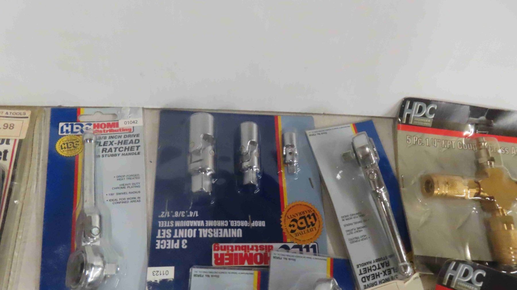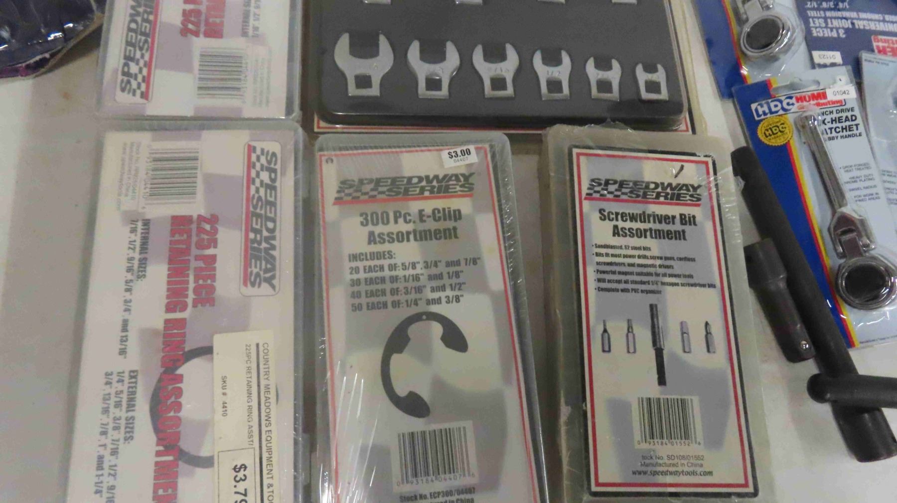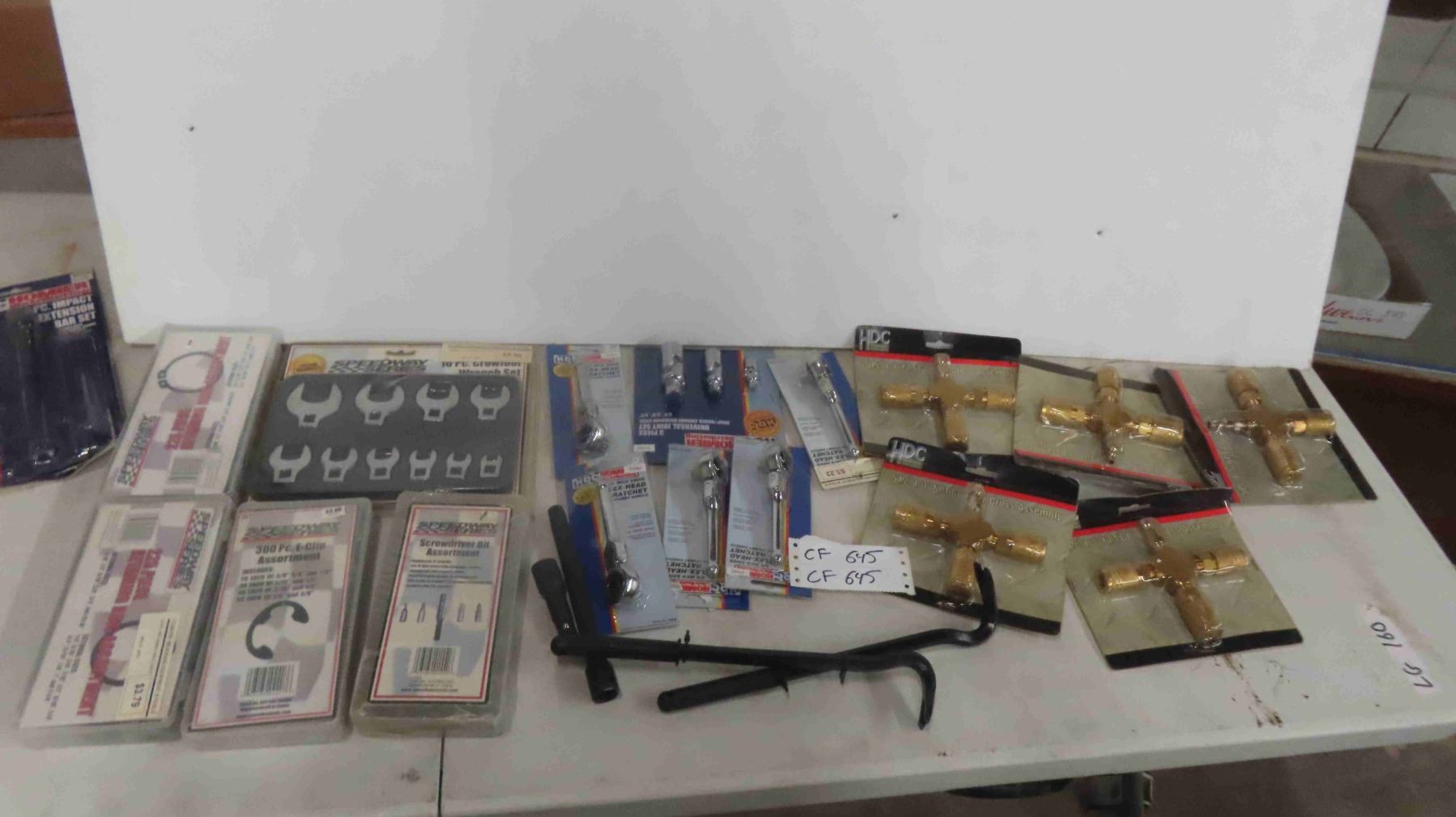 New Air Coupling, 3/8'' Ratchet, Universal Sockets, Crow Foot Wrench, Nail Puller, E Clips, Retaining Ring Set, Screwdriver Bit Set