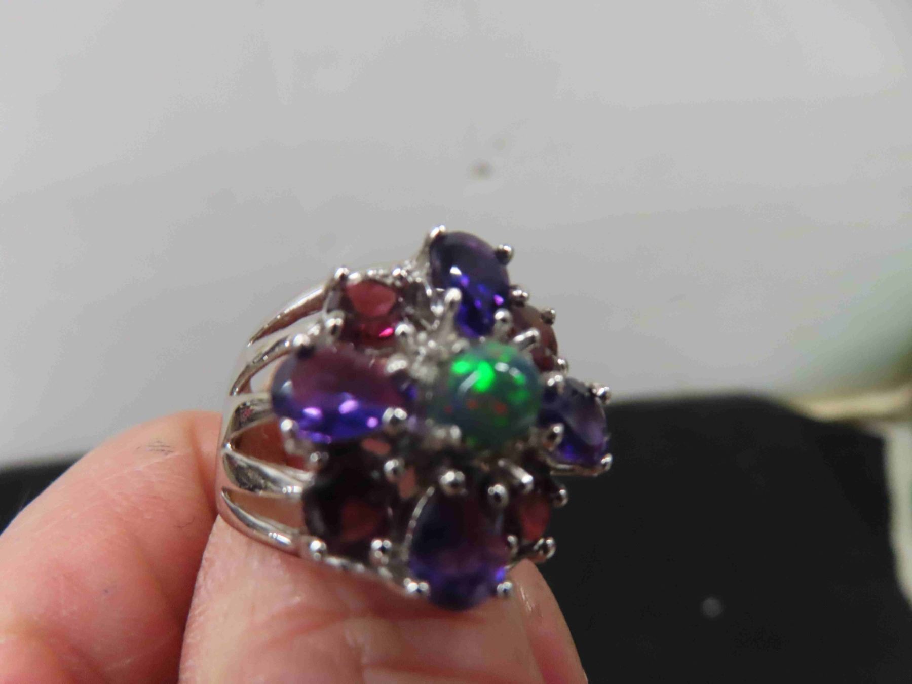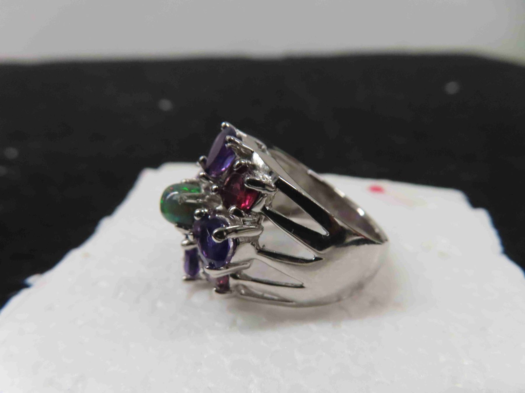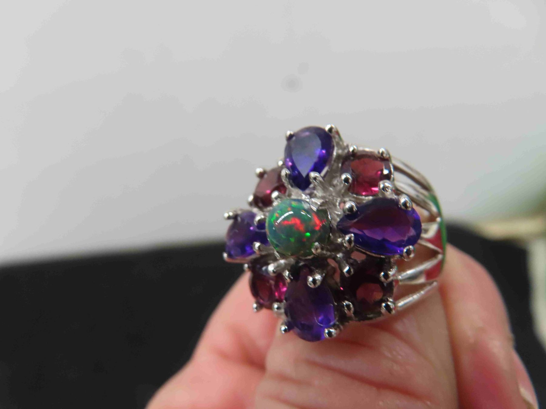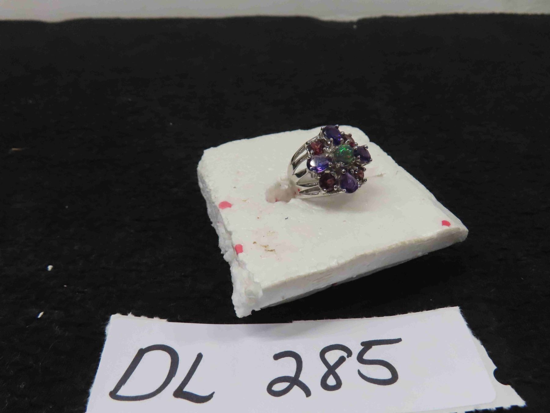 New Amethyst Garnet Opal Center 14K Gold Plated Sterling Silver : Weight 8.86 Grams , Size 7