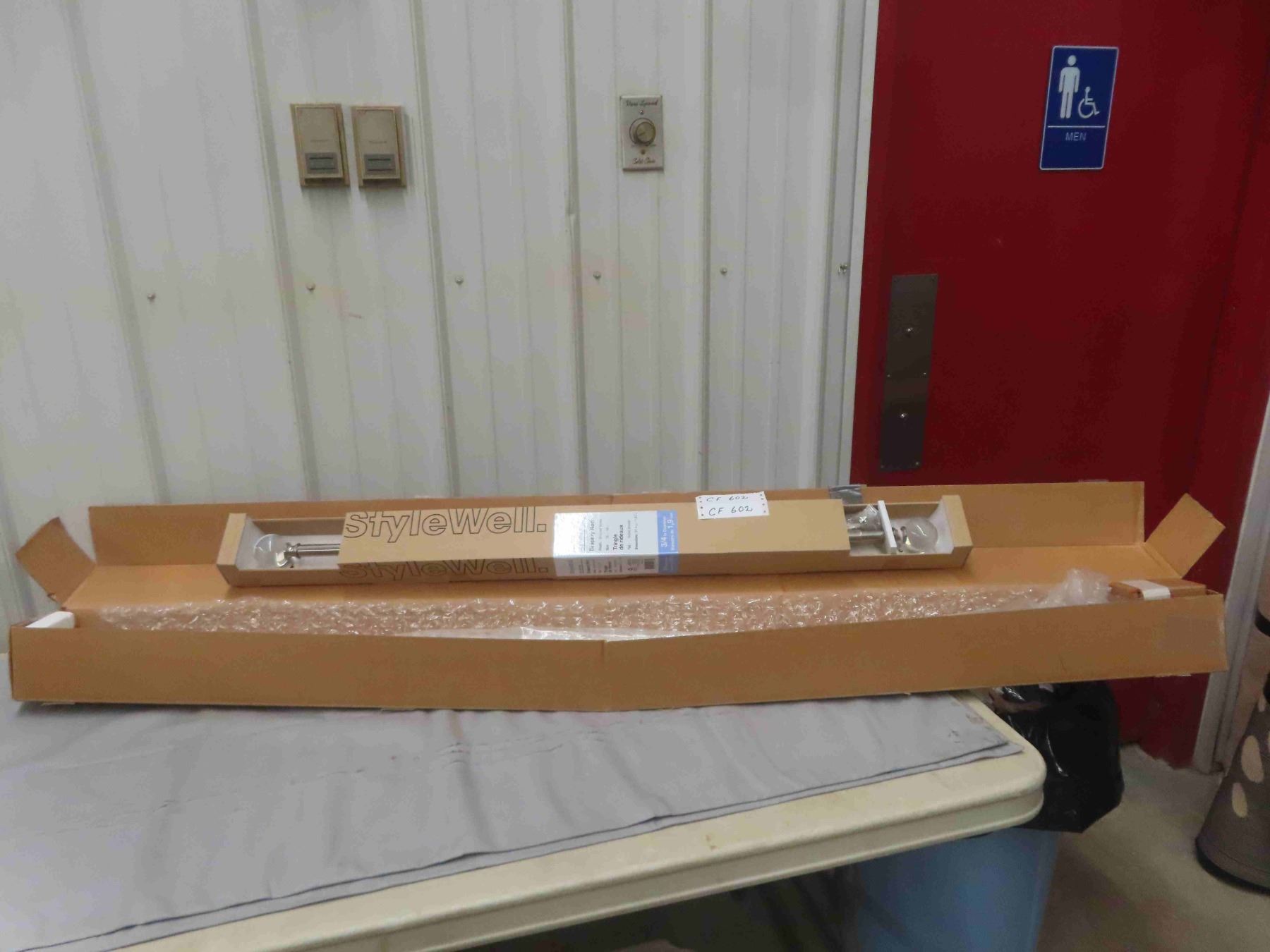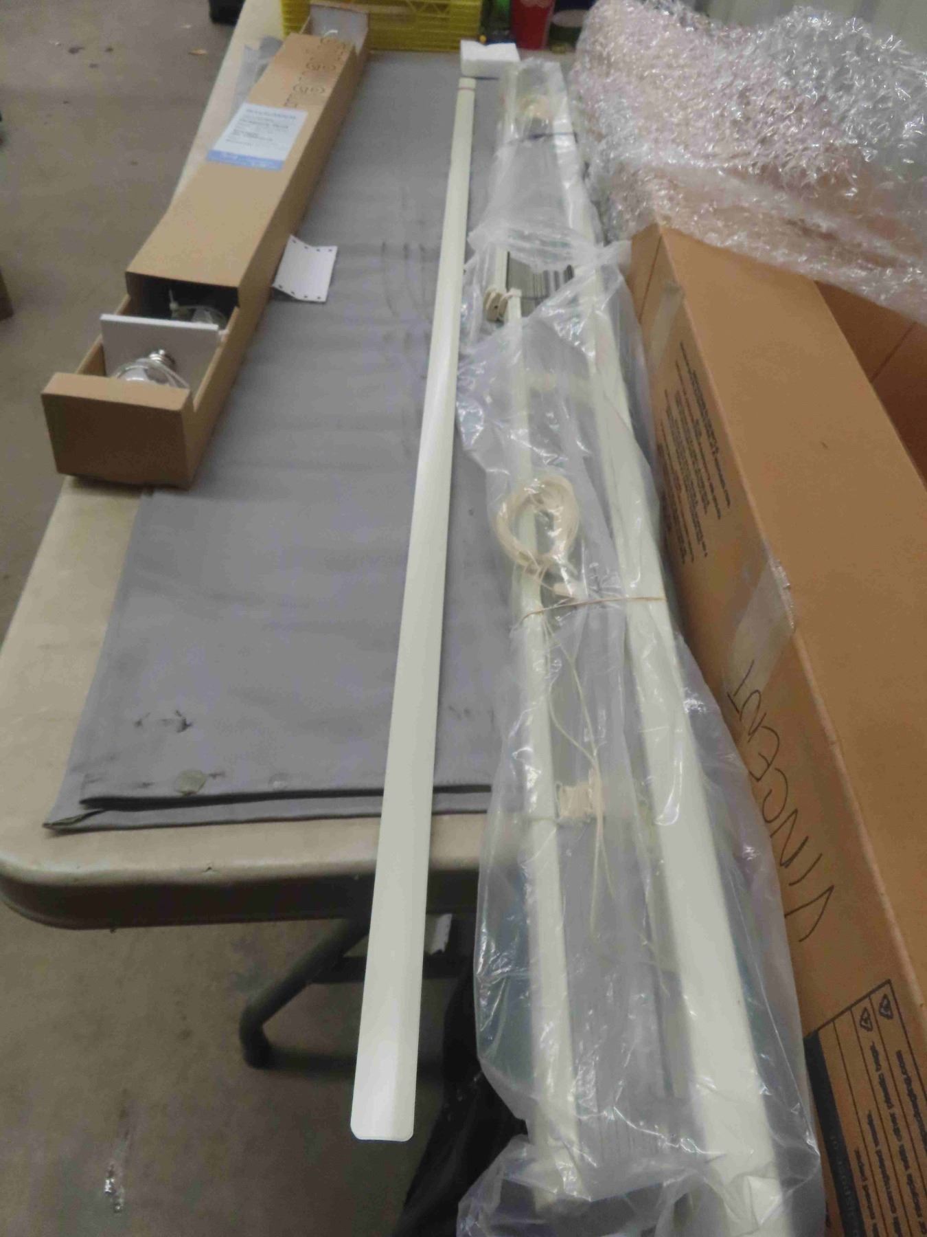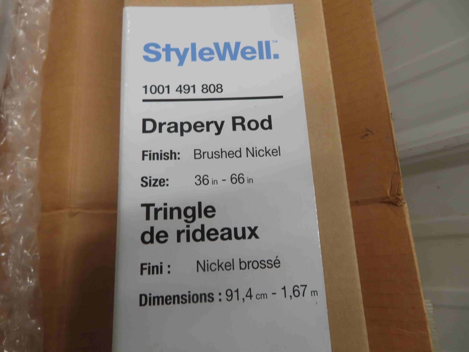 New Blind 57.25"w Unknown Length - Almond Color & New Brushed Nickel Drapery 36-66" Length