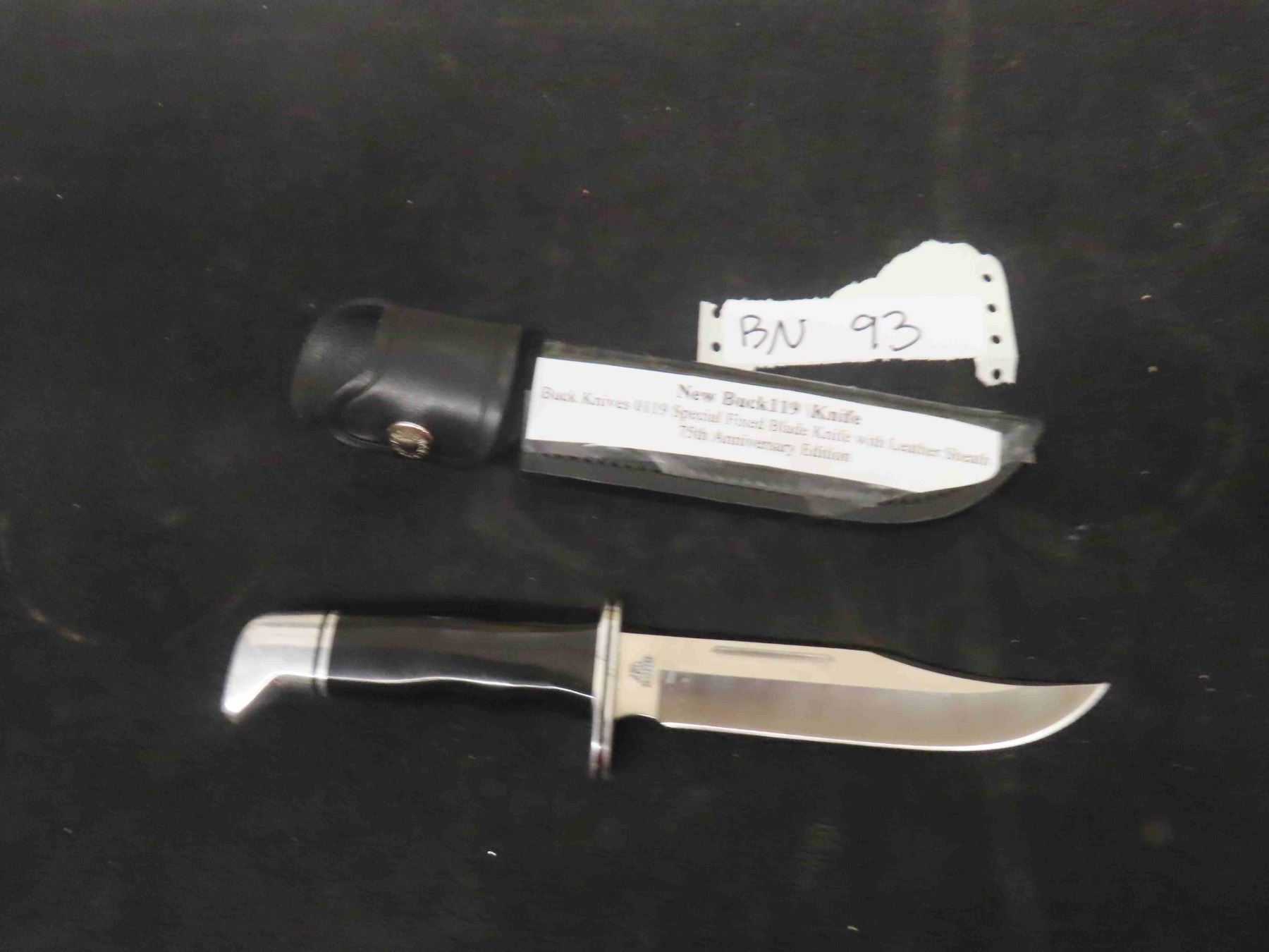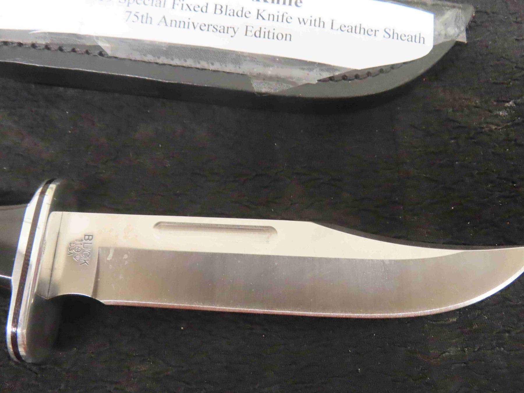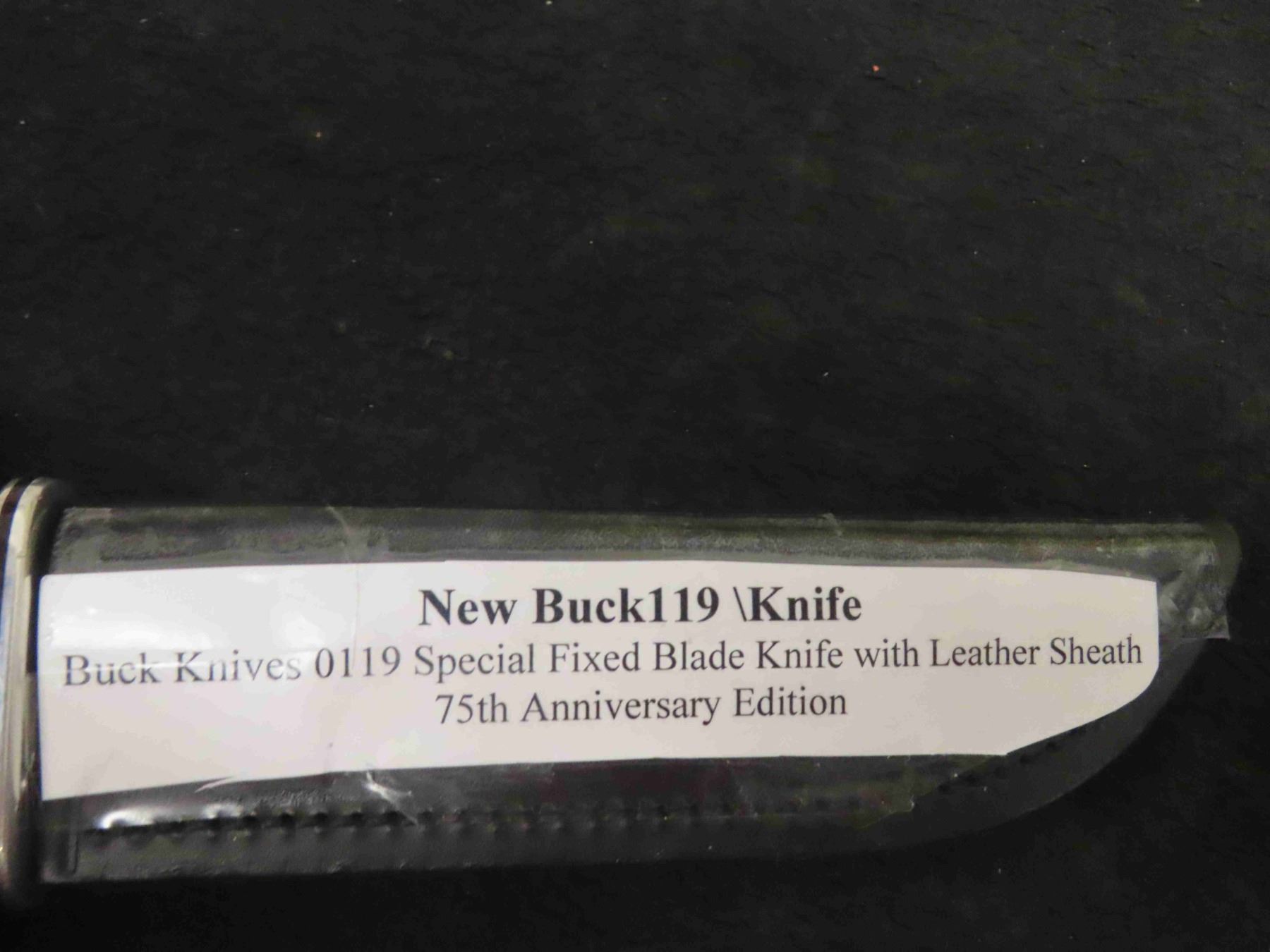 New Buck 119 Knife - Fixed Blade with Sheath, 75th Anniversary- Total Length 10.5"