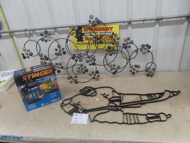 New Bug Zapper, Wrought Iron Decor 24"×48" + Metal Hockey Player Decor 17"×37"