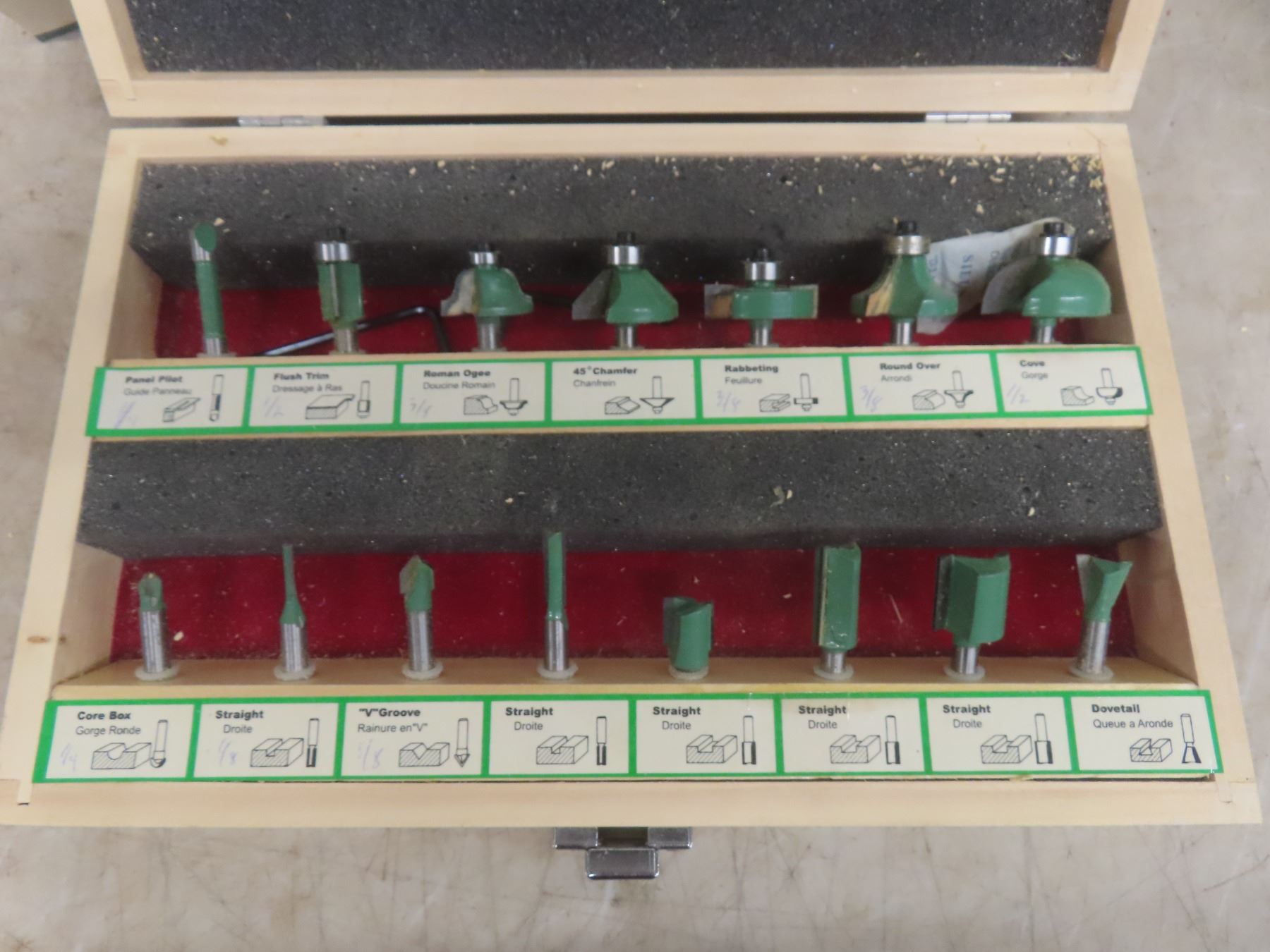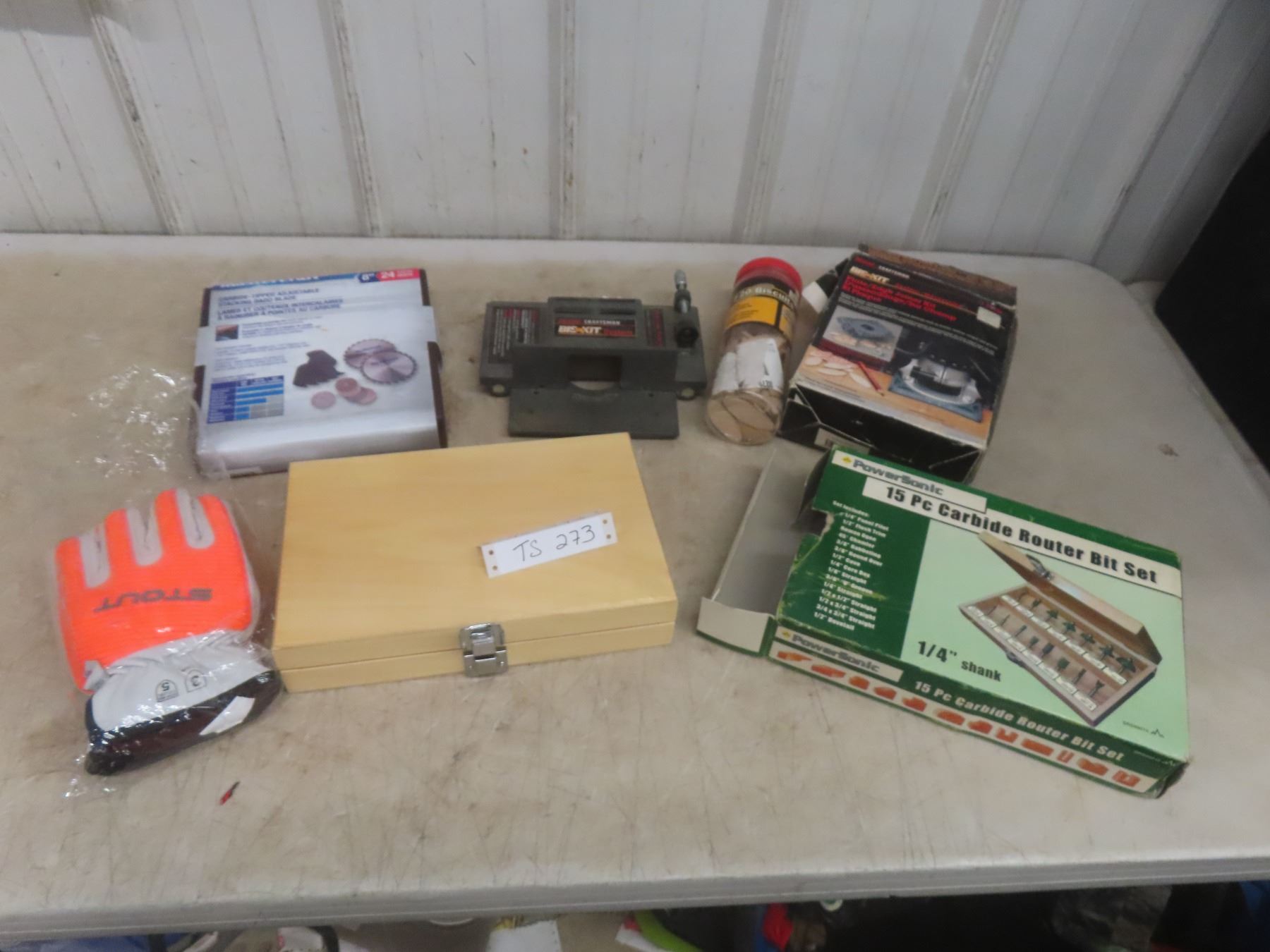 New: Carbide Tipped Adjustable Stacking Dado Blade, 15 Pieces Carbide Router Bit Set, Plate/Edge Joiner Kit with Bisquits & New Gloves