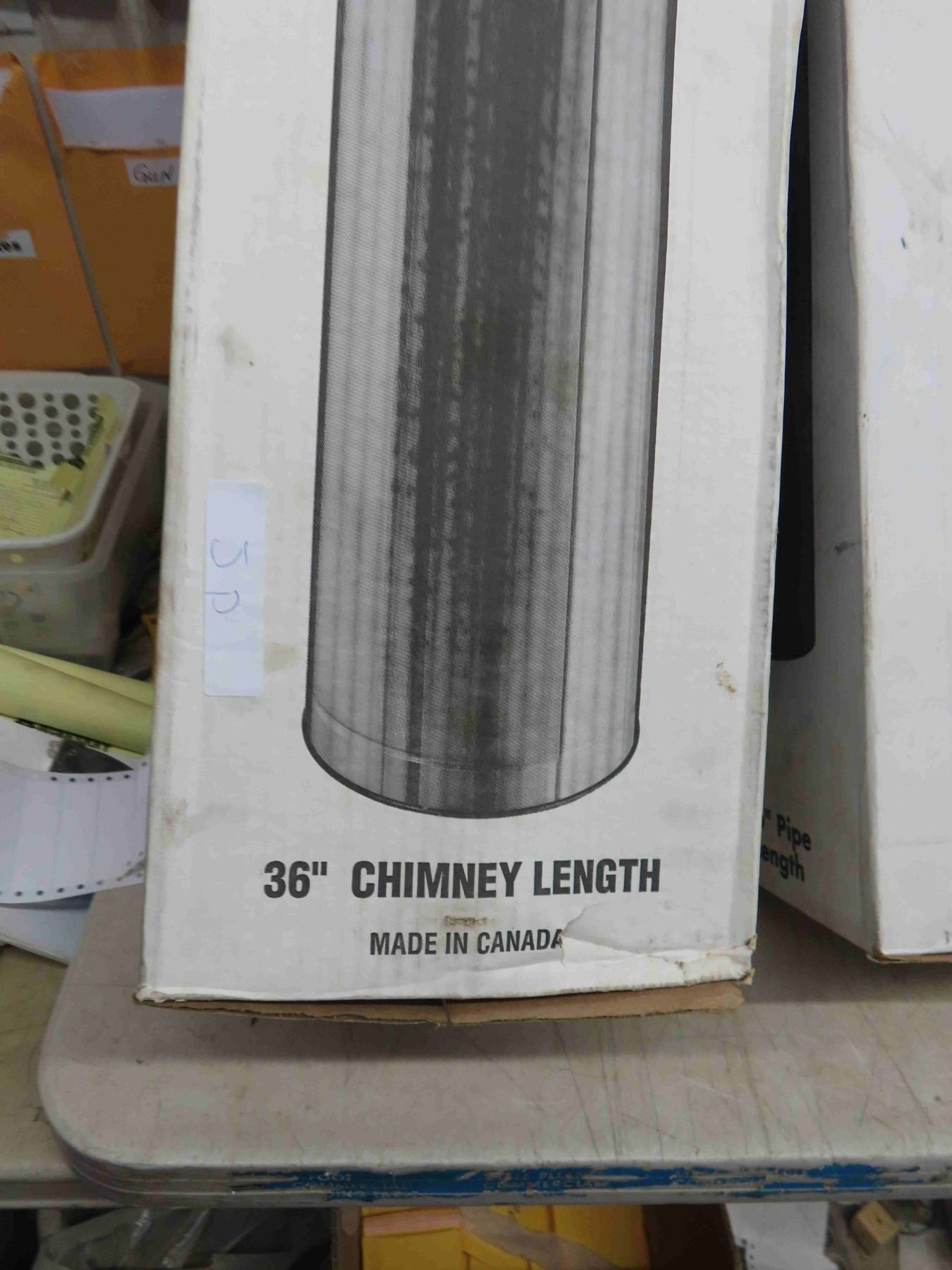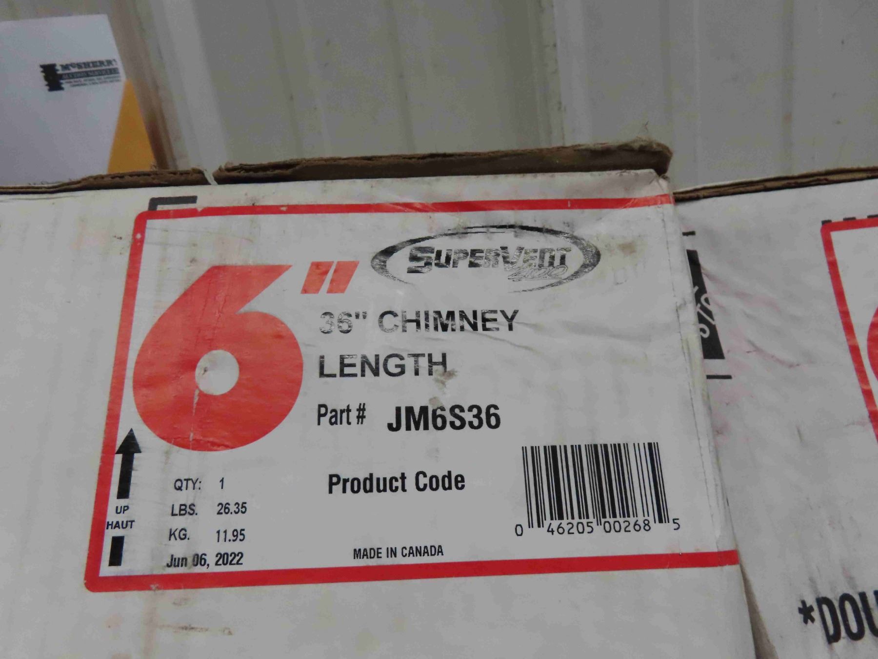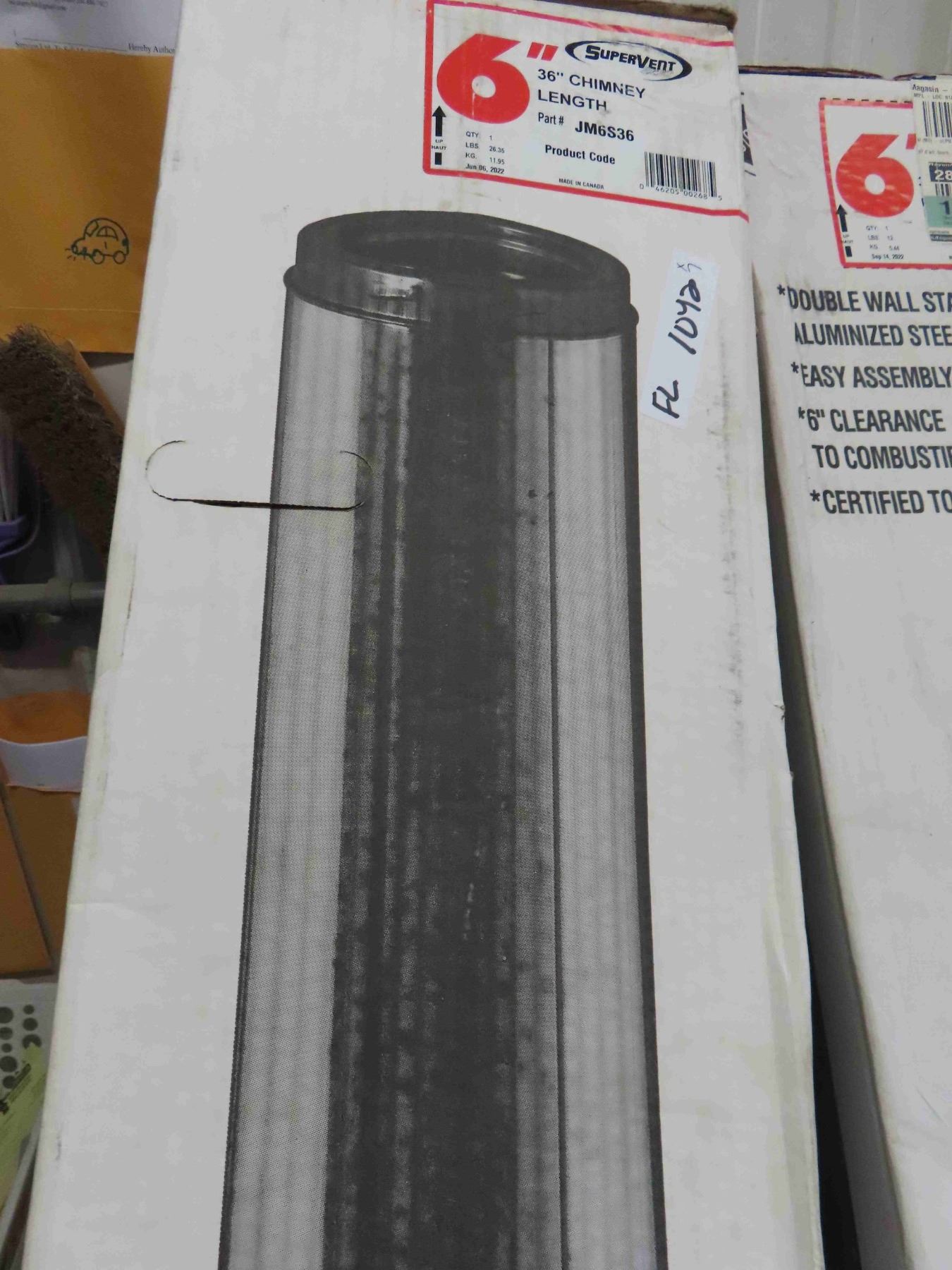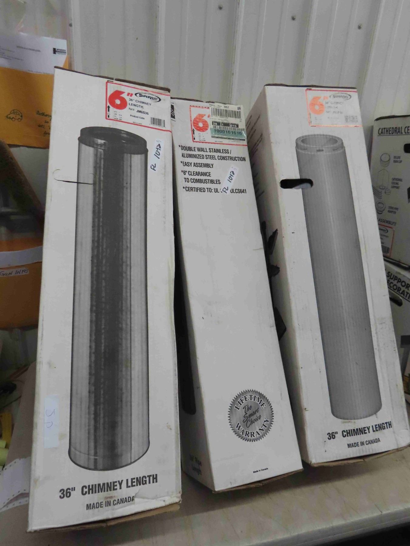 New Chimney: (3) 36'' x 6'' Chimney , (3) Wall Bands , (2) Ceiling Support Kits