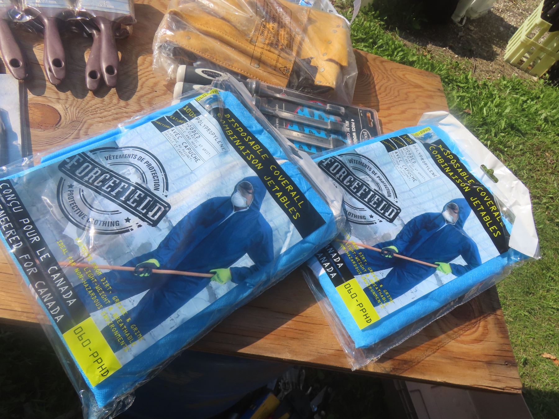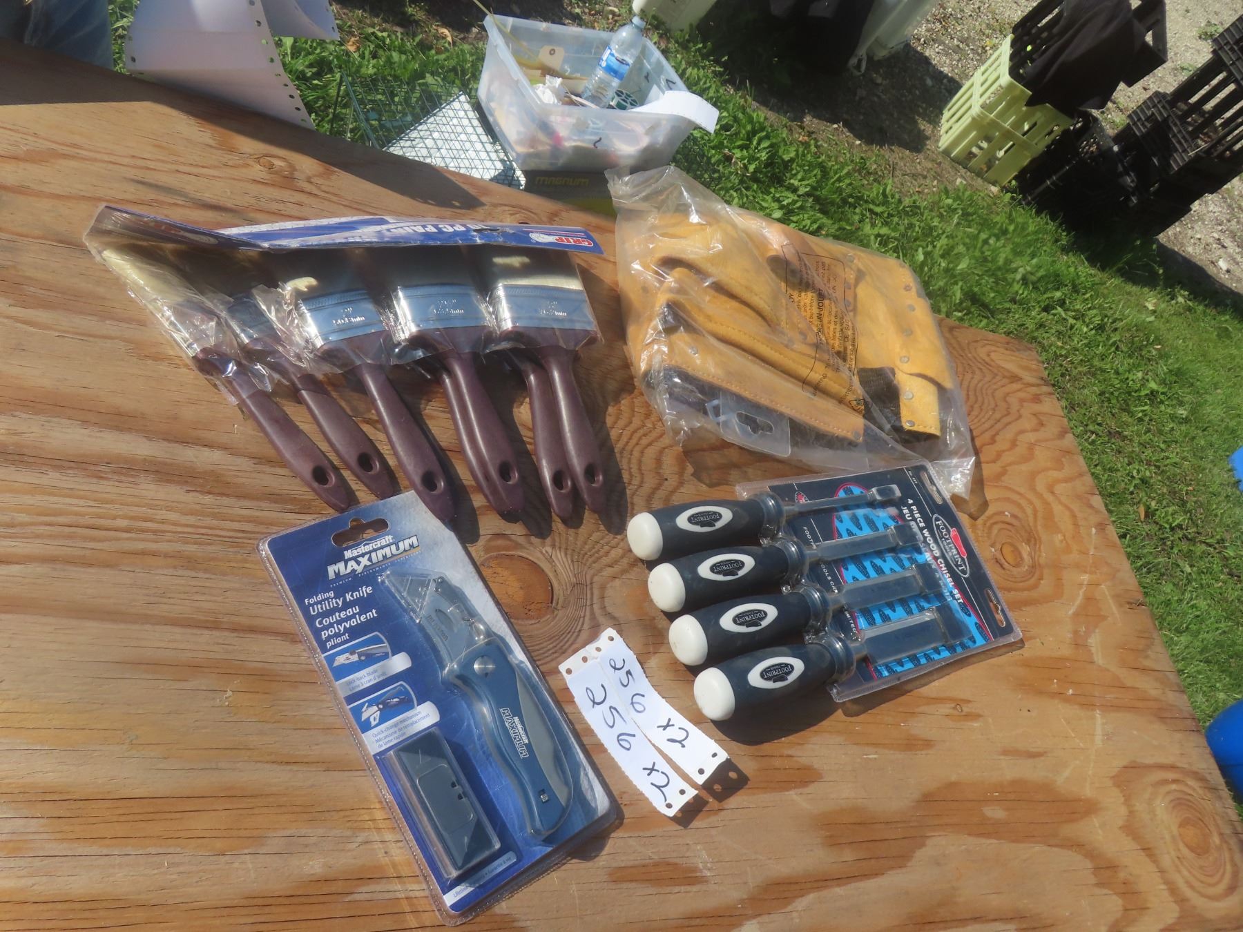 New Chizels Tool Belt Paint Brushes Utility Knife and Disposable Coveralls